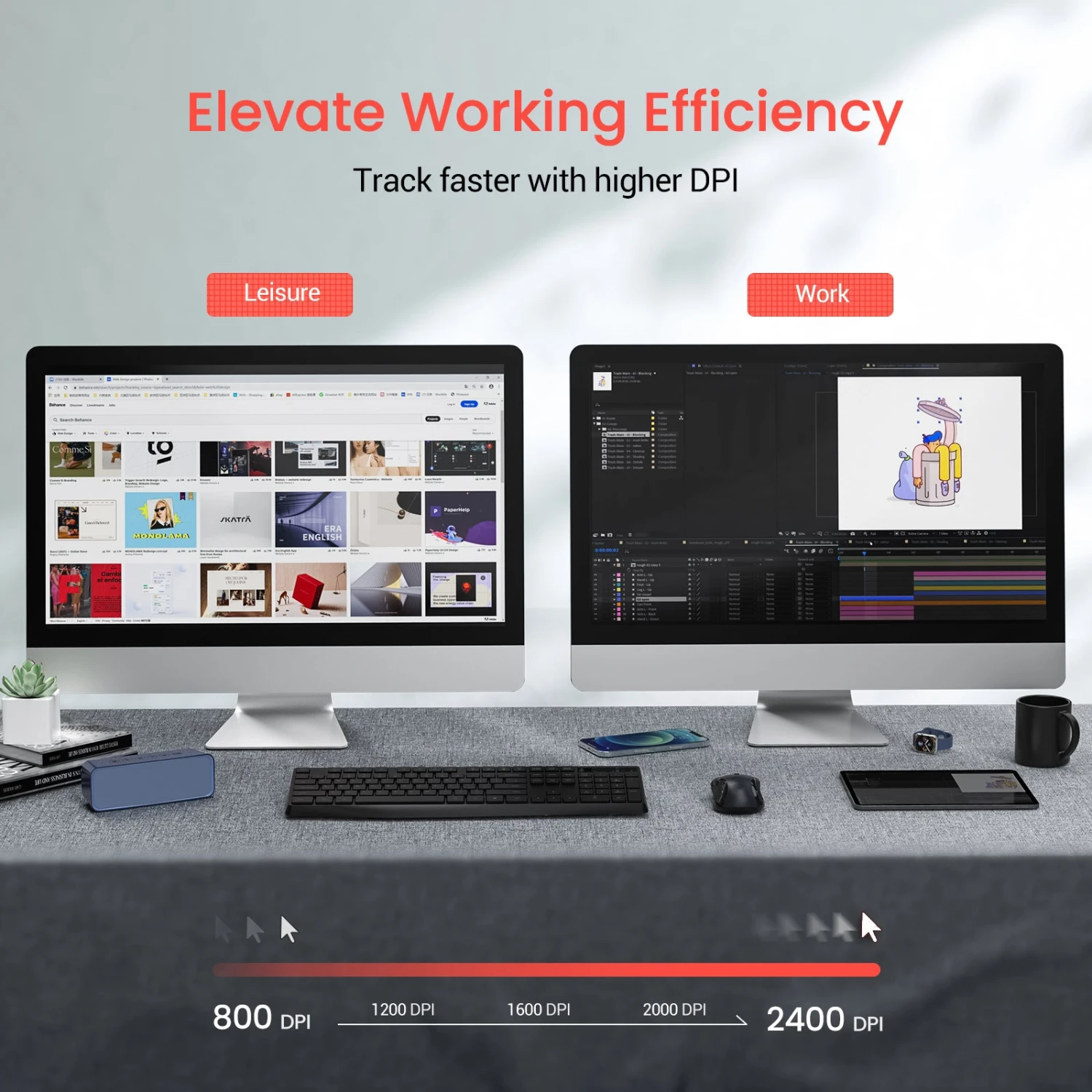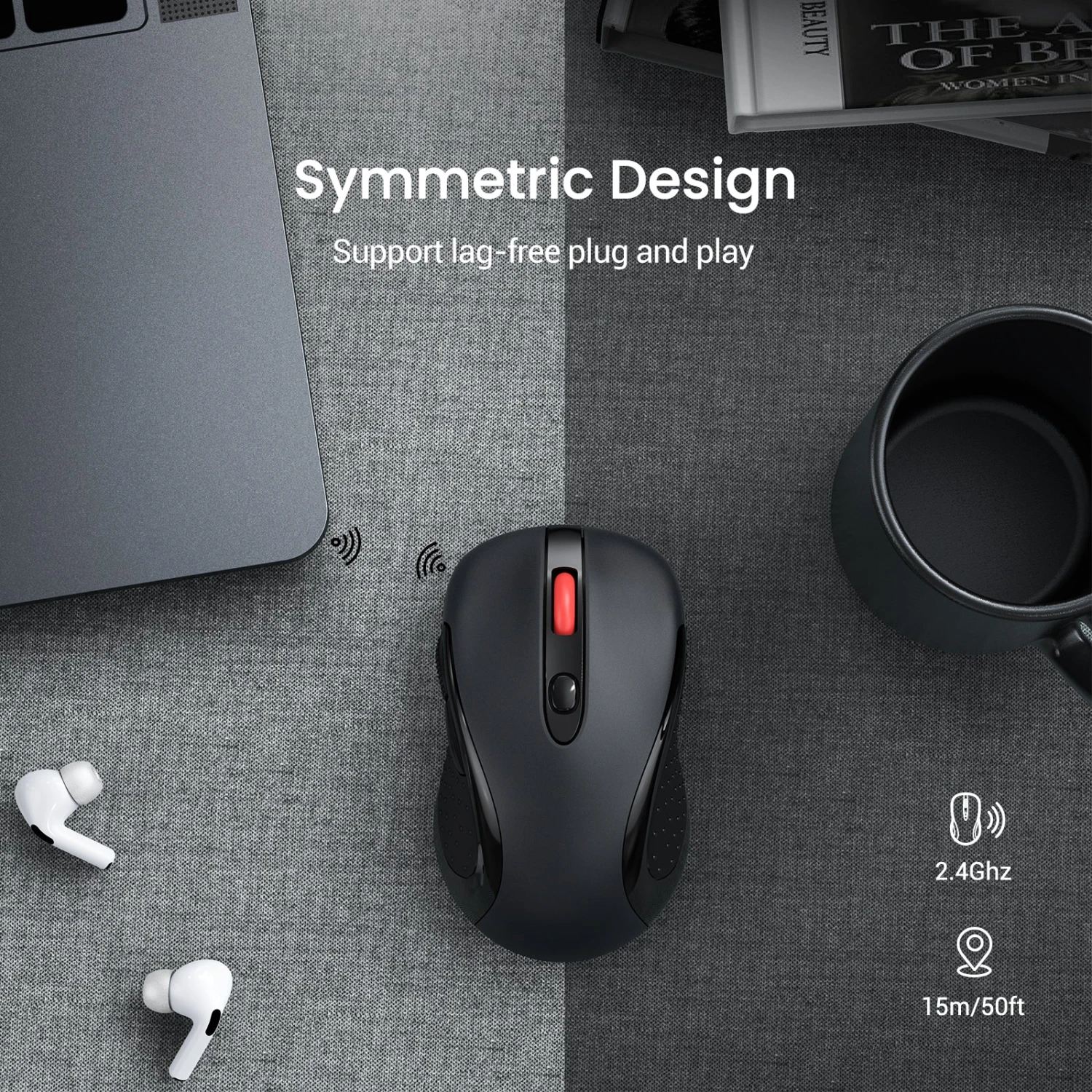 Easy to Use: 5 DPI levels: 2400/2000/1600/1200/800 to meet most of the usage needs! Plug and Play, no need any driver. This usb mouse support 50ft wireless connections, you can avoid being bothered by the power cord! Convenient and efficient!