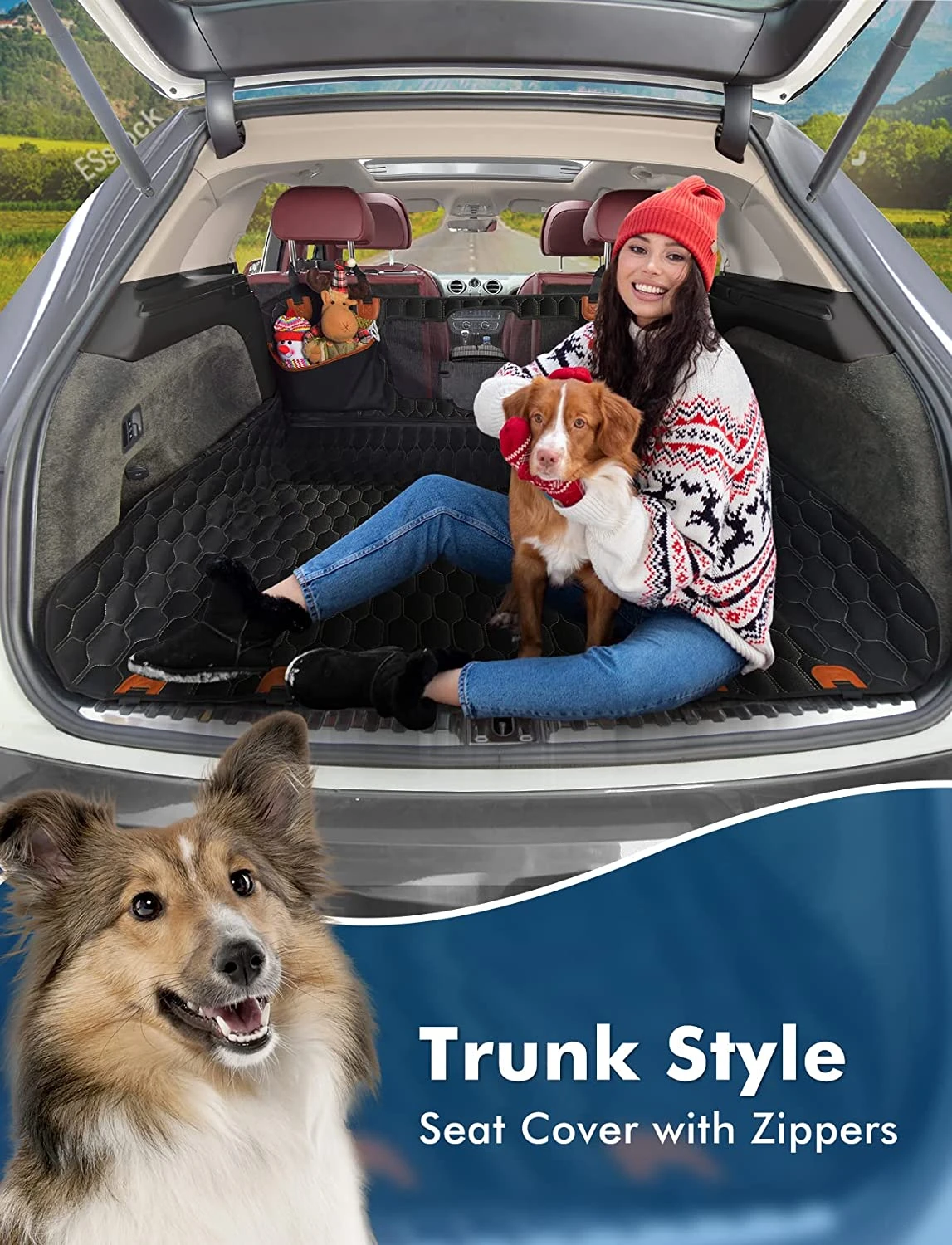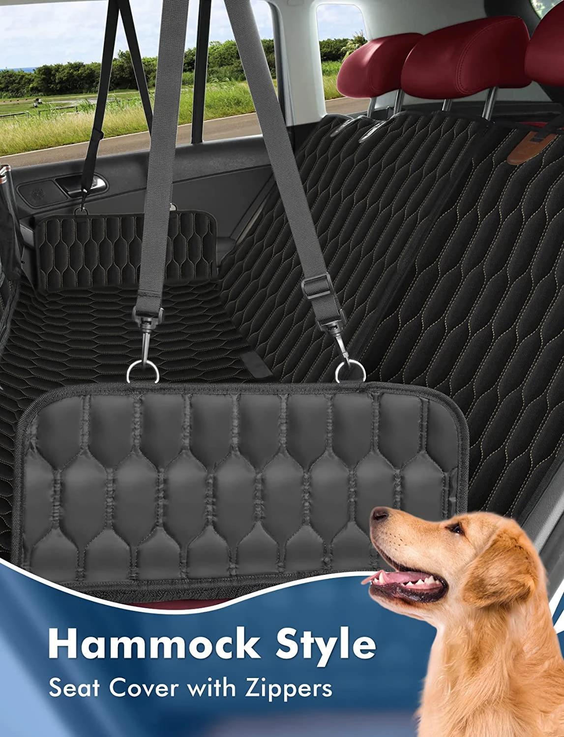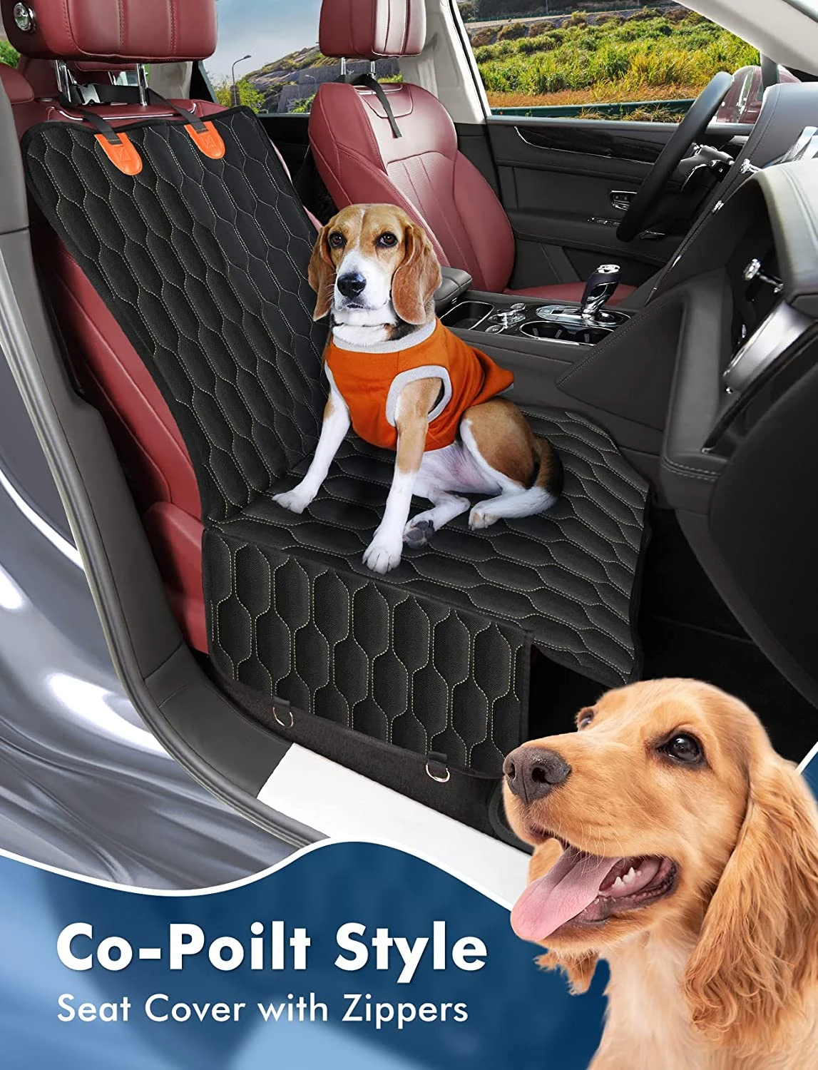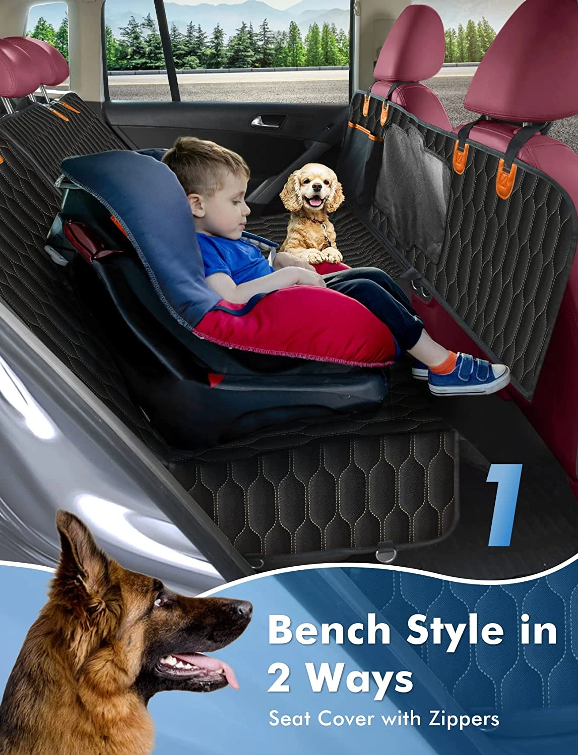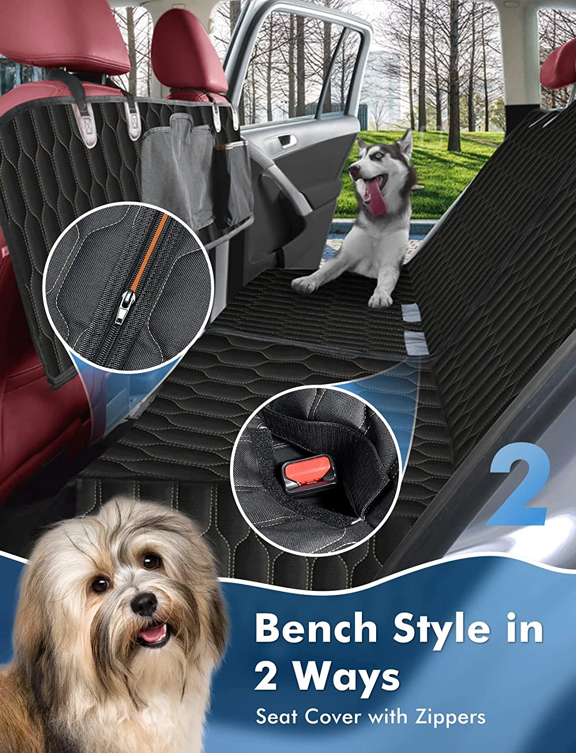 4-in-1 Luxury Car Protector for Dogs: Highly versatile with split design. This 4-in-1 dog seat cover can function as a backseat dog car hack, a bench style cover, a front seat cover, and a cargo liner. Dog car seat cover can accodate you and your canine pal on any type of road trip, with any number of people