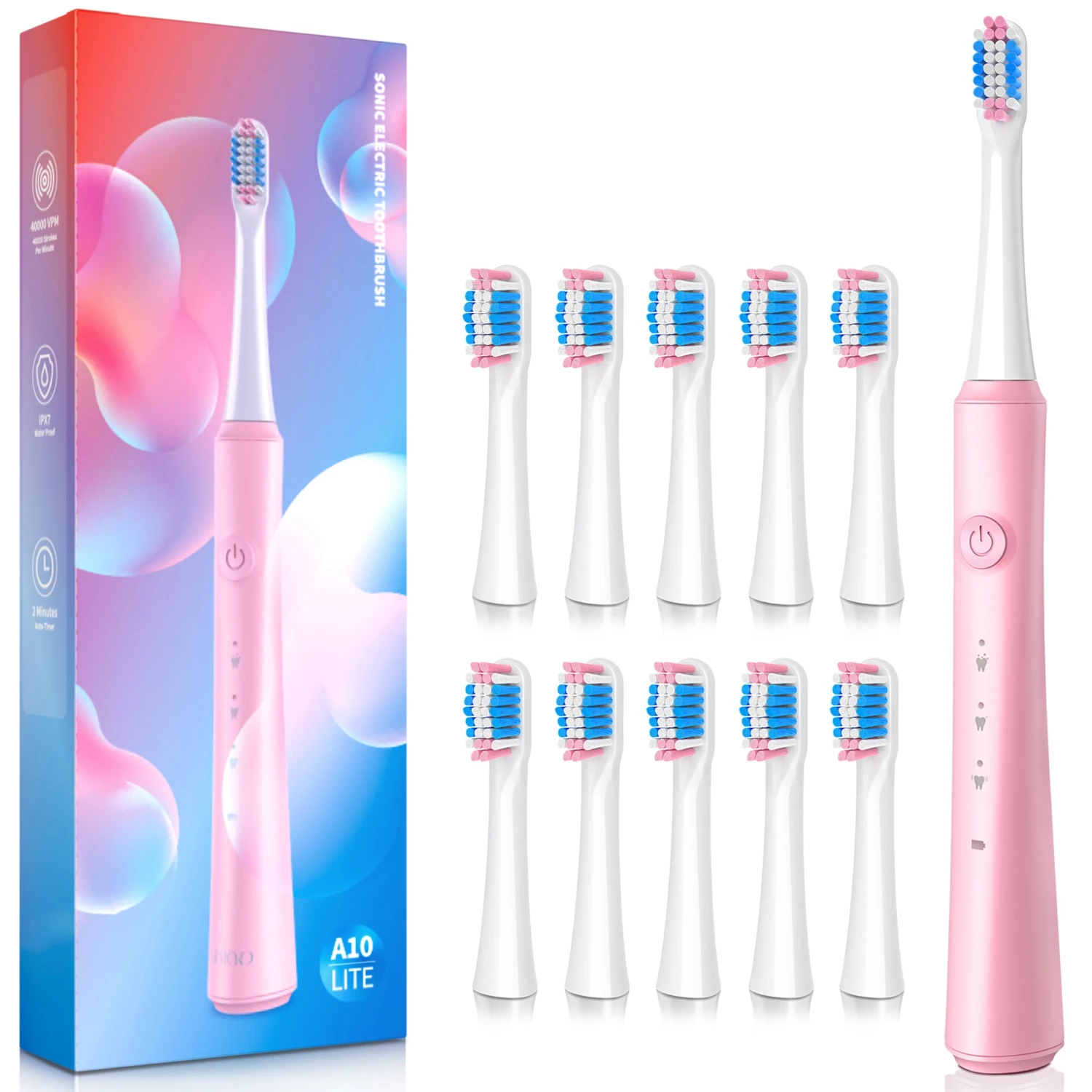 Modern Tech for a Healthy Smile – sonic toothbrushes built in 2 minutes tooth brushing timer encourages you to achieve the dentist-recommended time, and with interval pause every 30 seconds, always let you know when to replace brushing area to encourage a healthy brushing habit. Elegant, sleek and simple lines design of the electric toothbrush make it a perfect addition to your bathroom! Classic black handle suitable for adults and kids.