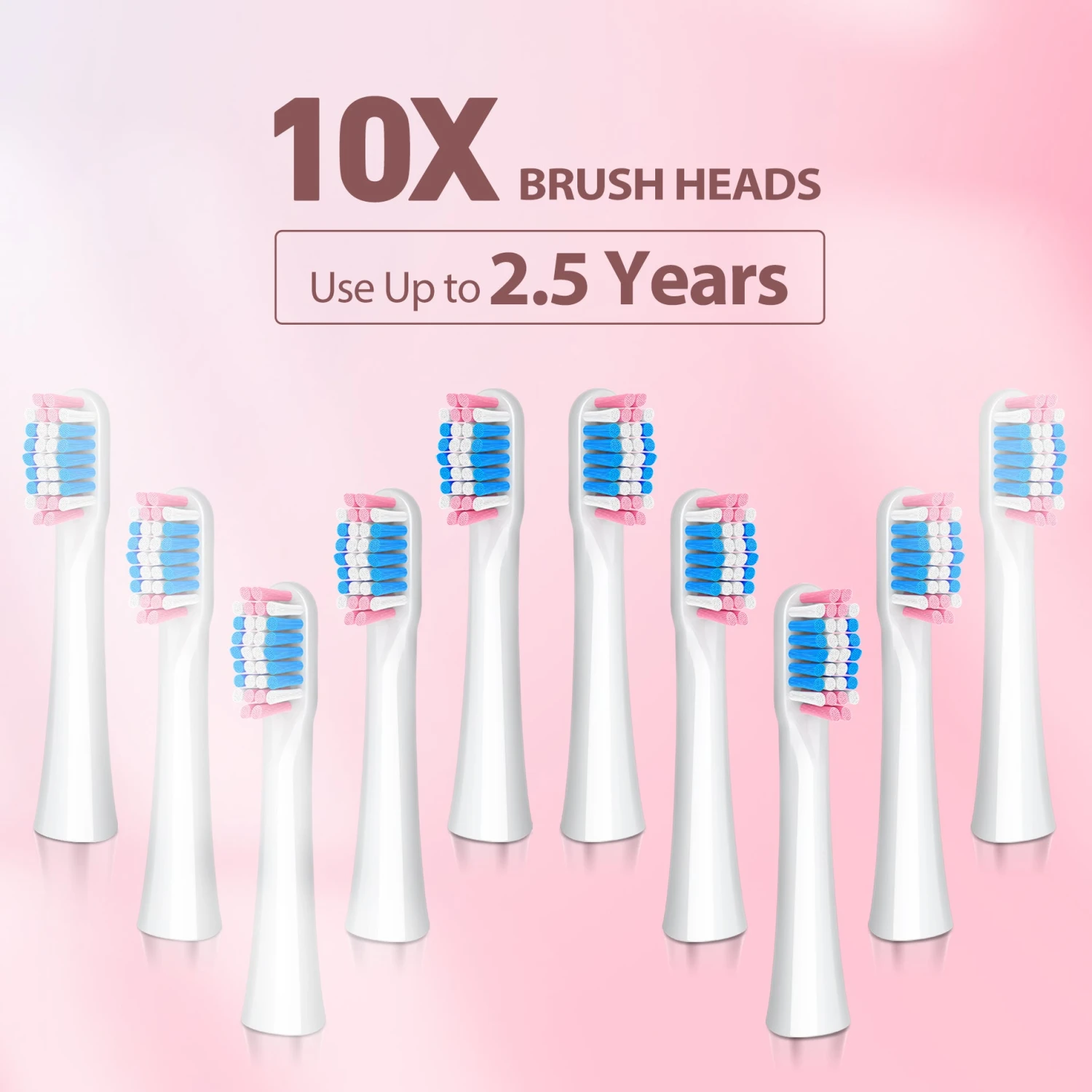 10 DUPONT HEADS LAST FOR 2.5 YEARS – HP141A Sonic electric toothbrush comes with 10 brush heads designed by DuPont company; a world leader in quality and material science field. High-density and unique “W” shaped bristles, help to brush easier on hard-to-reach places than ever. Each brush head lasts up to 3 months, so it will be more than 2.5 years for 10 in total. Absolutely the ideal choice for all of you!