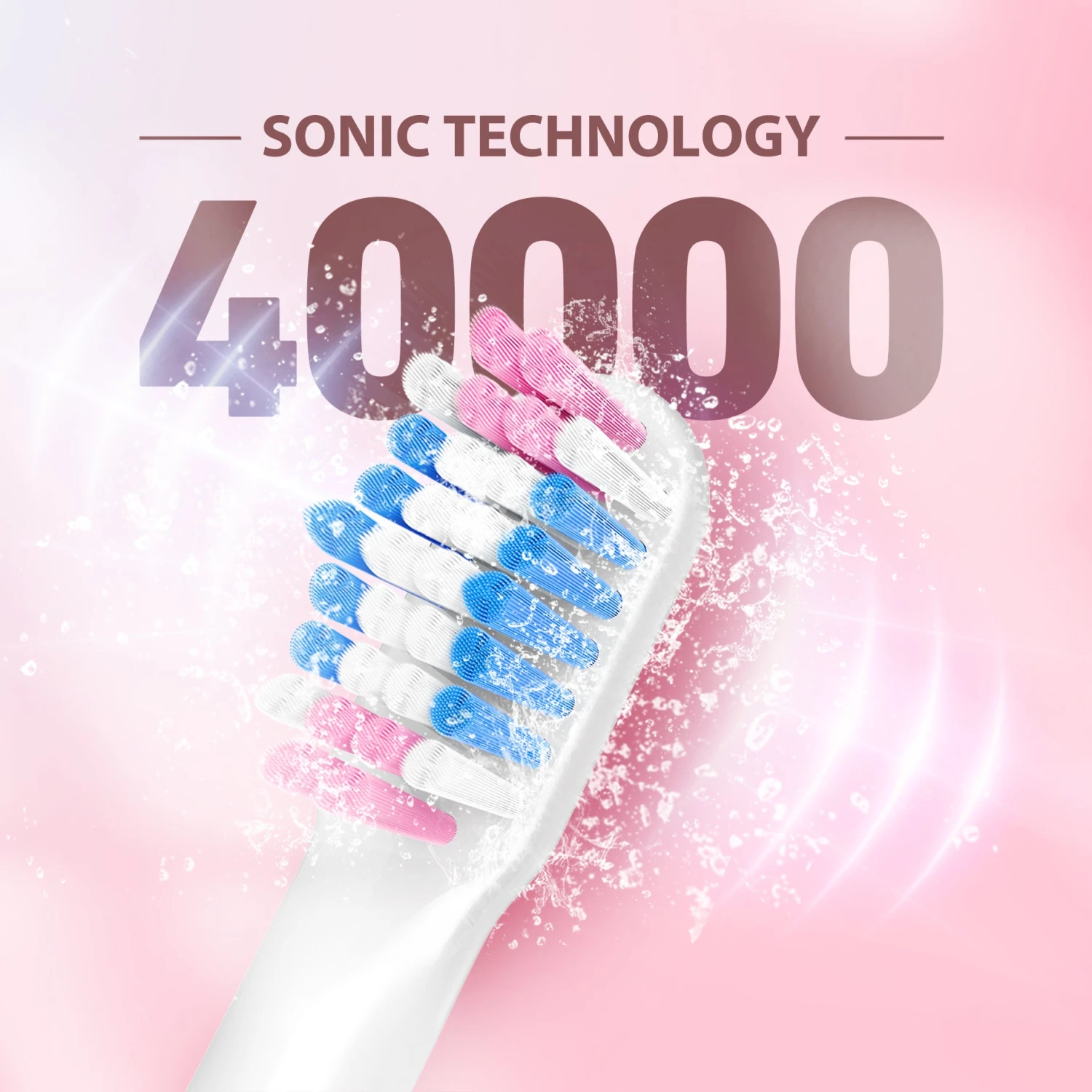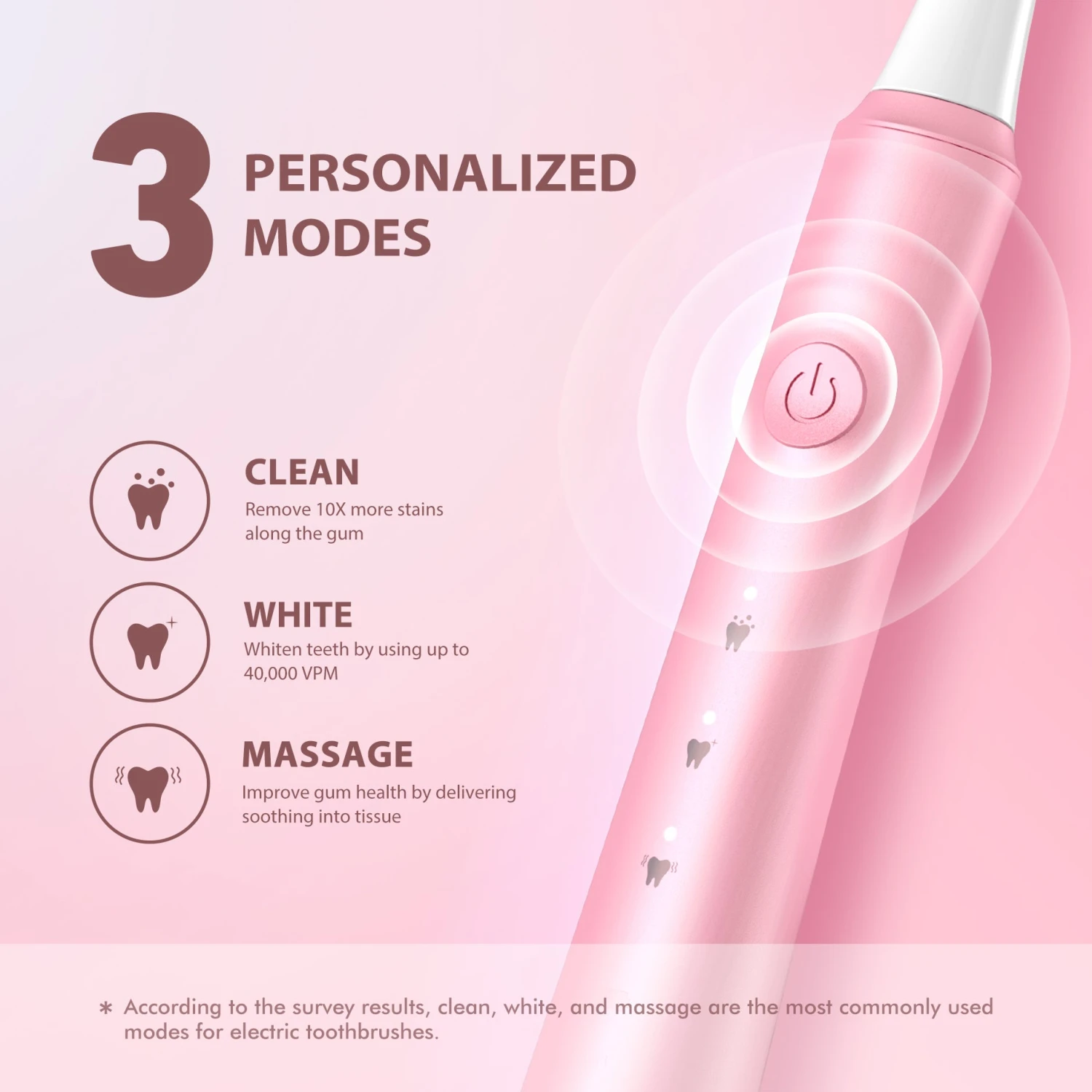 3 HIGH-PERFORMANCE BRUSHING MODES – Electric toothbrush for adults and teenagers supports 3 modes to suit different oral conditions. Clean mode – Remove 100% more stains along the gum. WHITE mode – whiten teeth by using up to 40,000 VPM. MASSAGE mode – improve gum health by delivering sooth into tissue. Take full care of your mouth and sensitive teeth by two minutes a day.