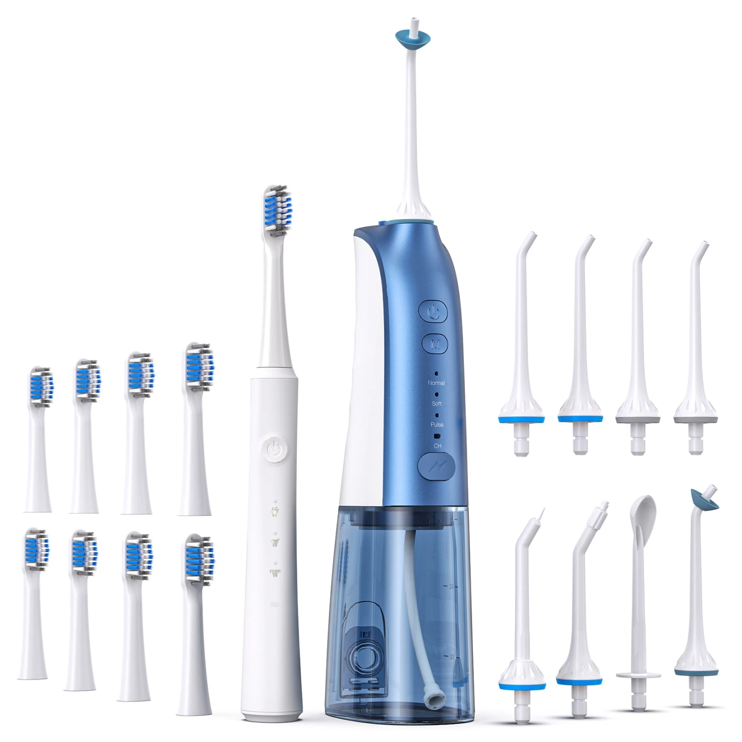 PPERFECT SET FOR TRAVEL – Portable water flosser (water flo) and electric toothbrush set offers dentist-like oral care during your nice trip.