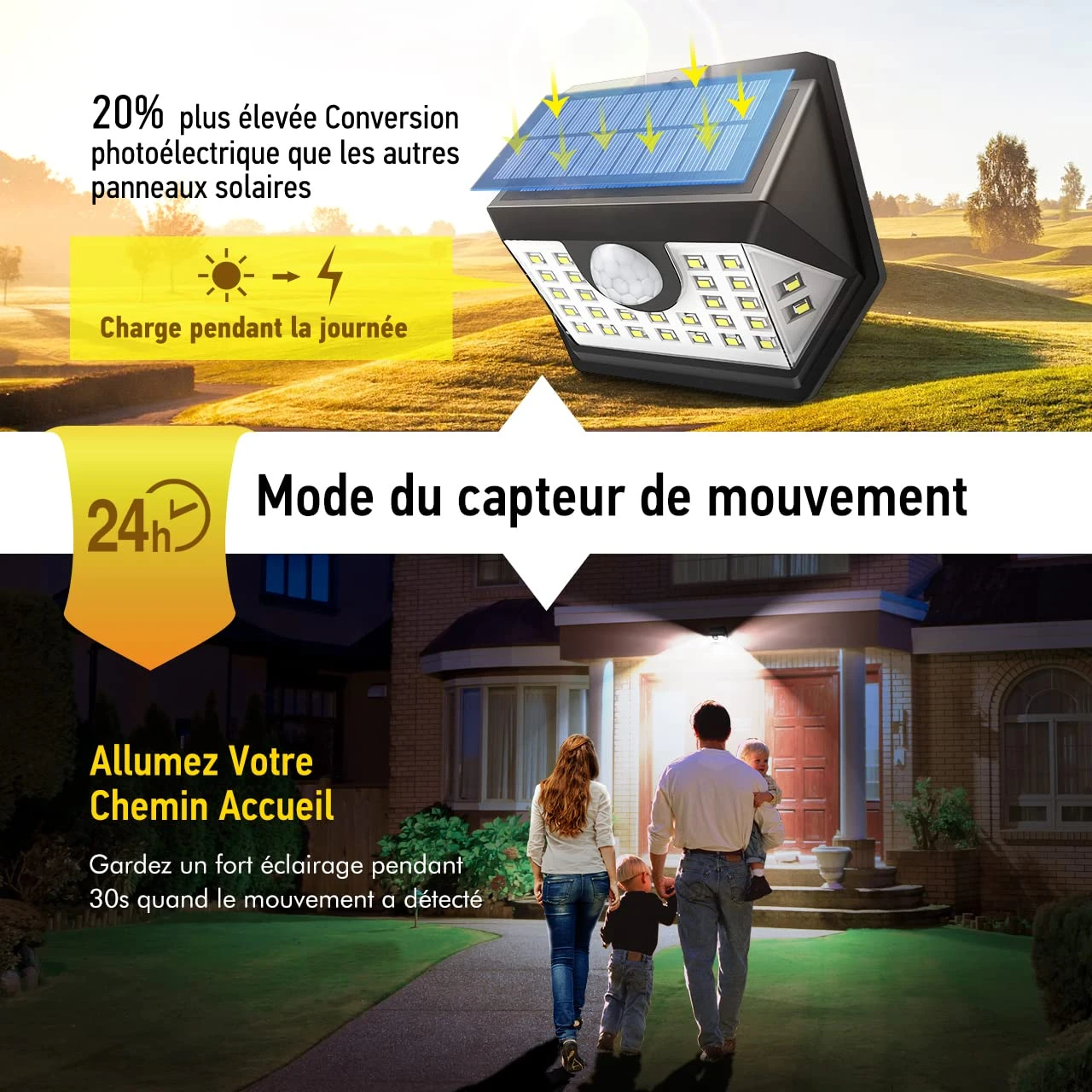 Sensitive PIR Motion Inductor – develops its own PIR sensor on this solar motion sensor lights which sensing range and sensitivity are both 20% higher than general solar lights, bringing ultimate using experience.