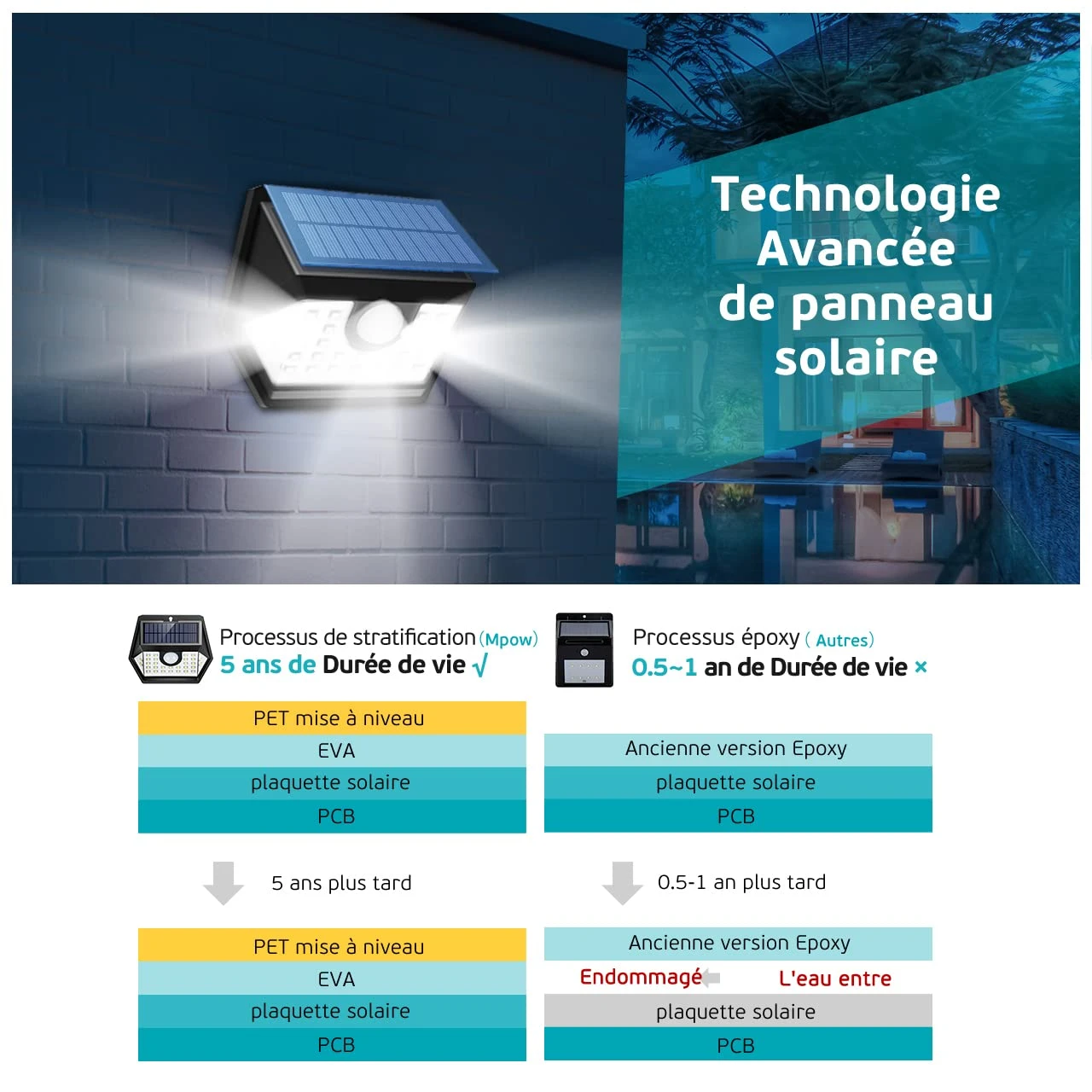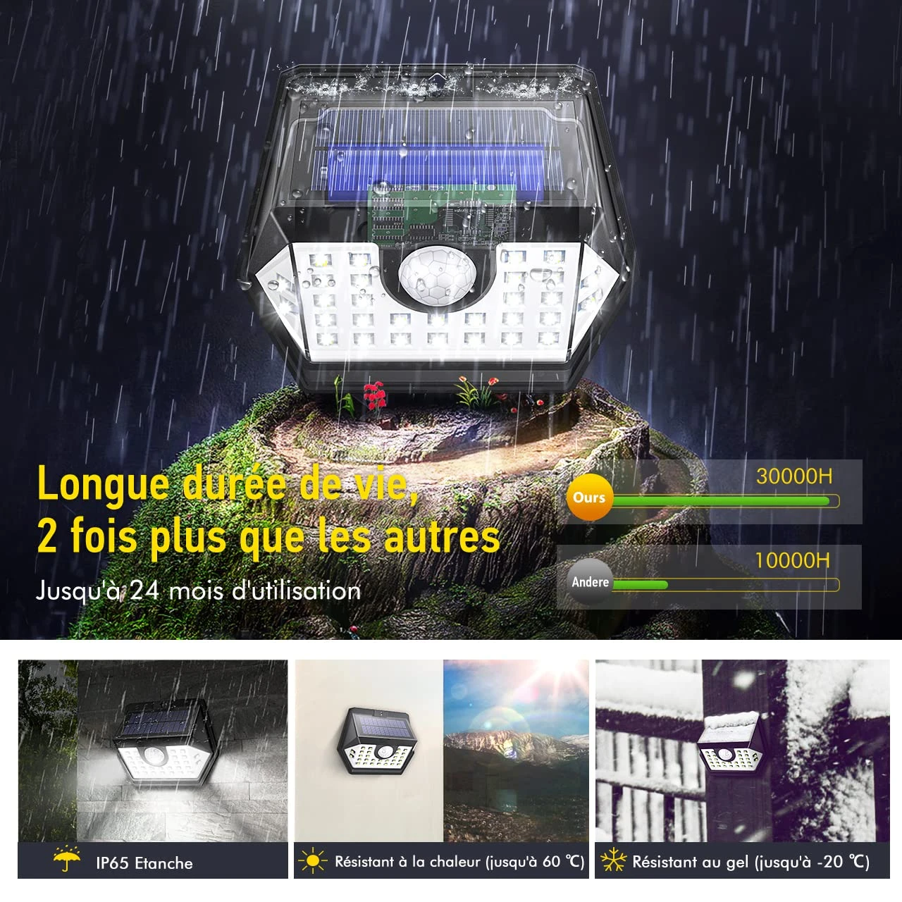 Waterproof IP65 and Durable – The solar outdoor light is water resistant and heat-resistant. A great solar security light for outdoor patio, garden, deck, yard, drive, outside wall, fence etc