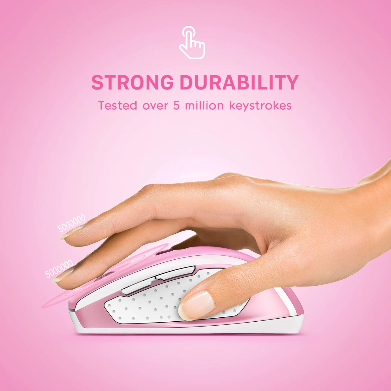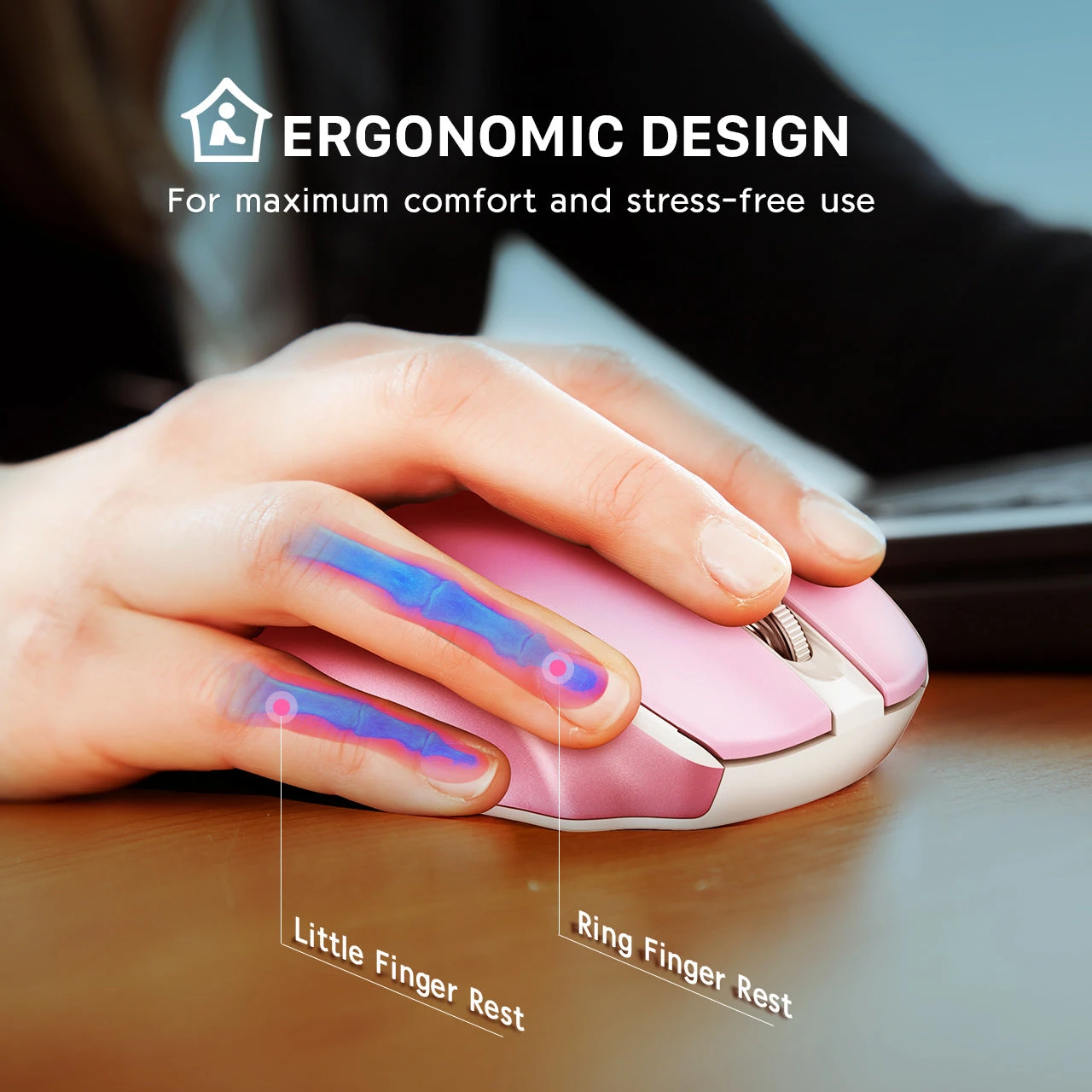 Comfortable Ergonomic Design-After thousands of samples of palm data, we designed this ergonomic wireless mouse. The laptop mouse has a streamlined arc and finger rest to help reduce the stress caused by prolonged use. The side pits help reduce slippage and maximize your feeling of use!