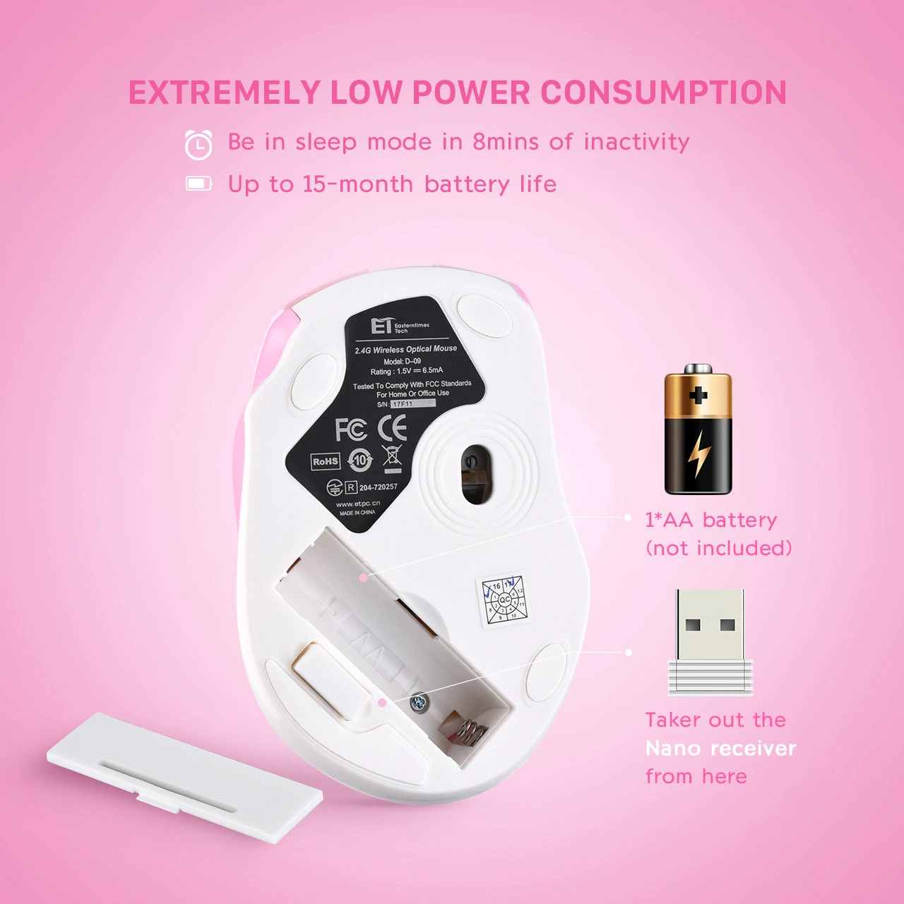 Power-saving, Long-lasting-Powered by 1 AA batteries (not included) , this wireless mouse can last up to 15 months in daily-use condition, you don’t need to worry about changing batteries frequently! This cordless mouse will be in sleep mode in 8 minutes of inactivity. Press any summary to wake it up.