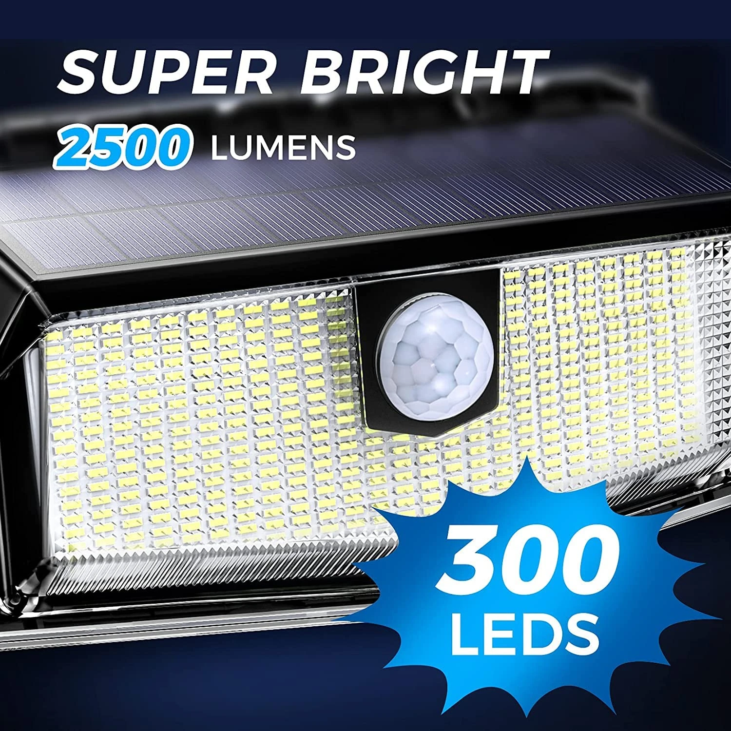 - 【300 LED Lighting】 Designed with 200 high-efficiency LED chips and with 270º wide-angle lignting, the solar light will provide a super bright lumen for a wide area. More sunshine it charged, it can illuminate longer. Please note: The solar sensor light may not be that bright if the weather is not good for absorbing enough sunshine.