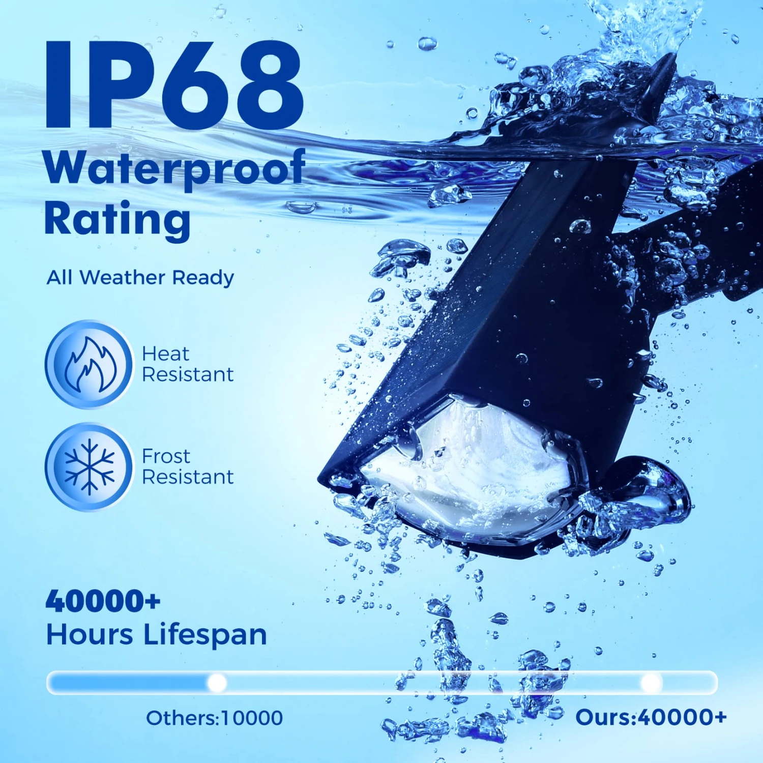 Leading IP68 Waterproof Technology: Made of high-impact ABS plastic and having been enormous technological breakthroughs in waterproof grade, outdoor solar lights have unique IP68 waterproof design and can withstand all kinds of terrible weather. Much more durable than other less waterproof grade lights.