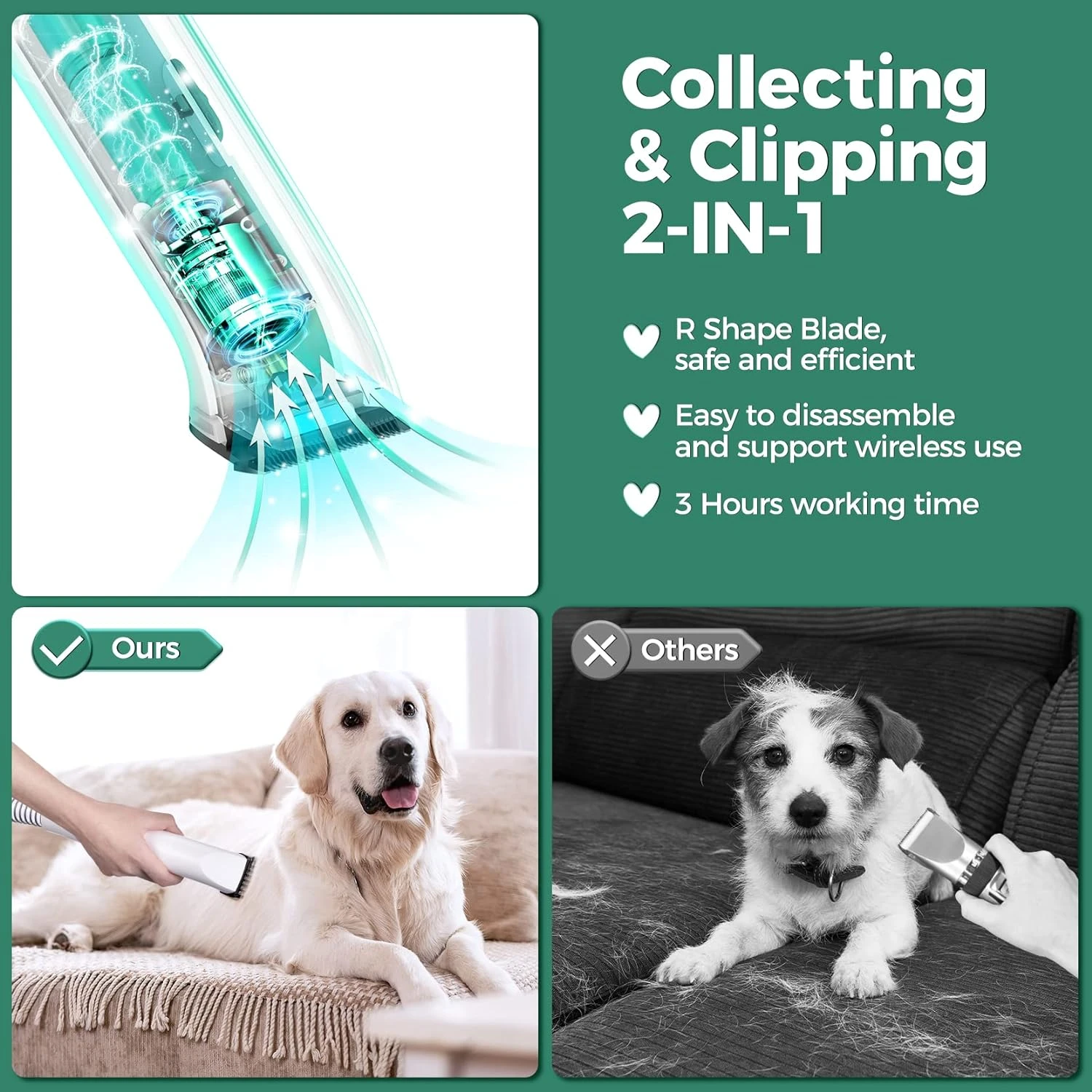 - 【𝗗𝗼𝗴 𝗚𝗿𝗼𝗼𝗺𝗶𝗻𝗴 𝗞𝗶𝘁 & 𝗩𝗮𝗰𝘂𝘂𝗺,𝗦𝘂𝗰𝘁𝗶𝗼𝗻 𝟵𝟵% 𝗣𝗲𝘁 𝗛𝗮𝗶𝗿】Traditional pet vacuum cleaners for pet hair always leave a lot of mess and hair at your home. This pet grooming vacuum with vacuum can suck the pet hair into the vacuum dust box directly while grooming and clipping, this dog grooming vacuum can also collect the dust and pet dander, keep your home clean and tidy!
