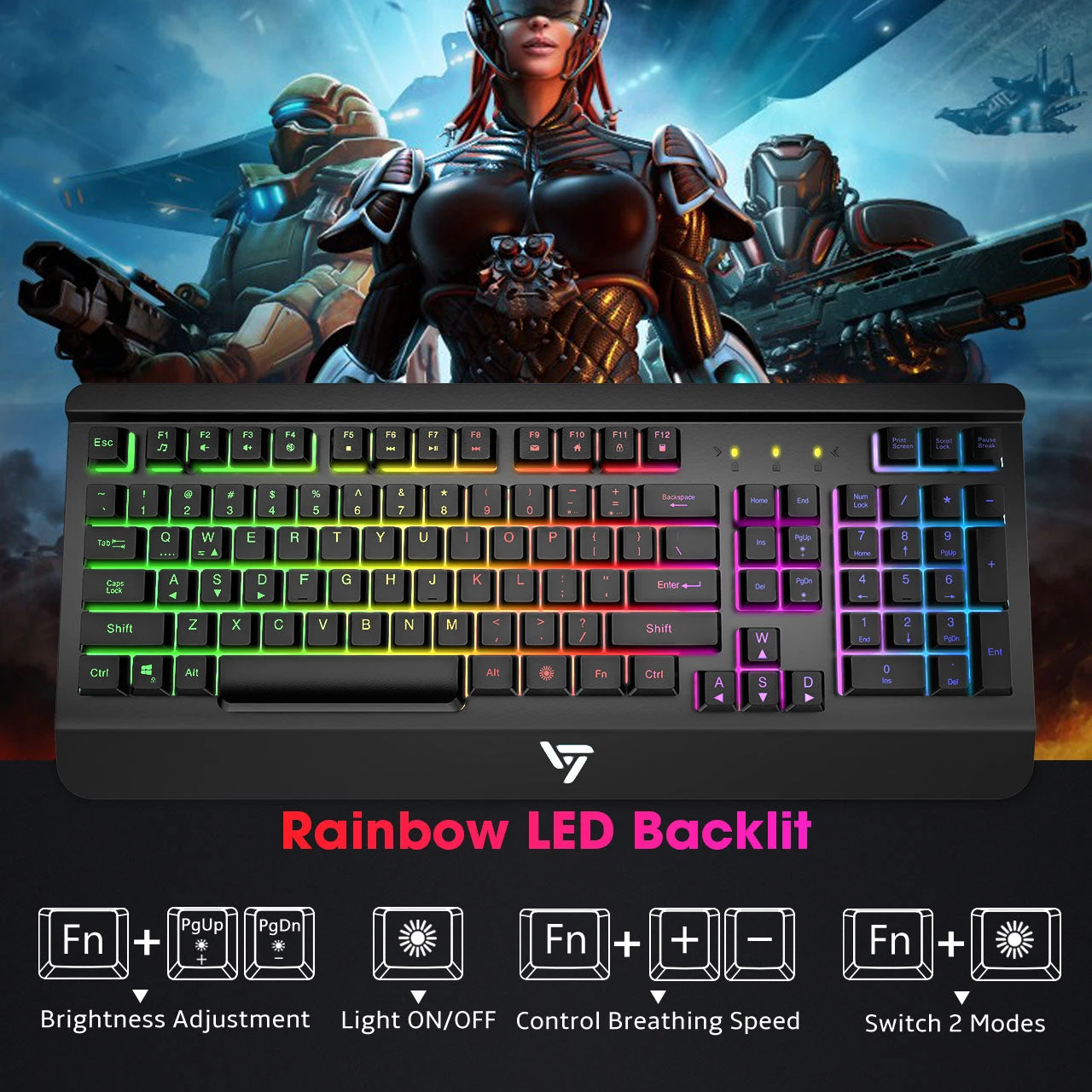 Easy of Use & Reliable Service: VicTsing LED keyboard plugs and play, no software installation required, compatible with Windows 95/98 / XP / 2000 / ME / VISTA / 7/8/9/10, Mac.(Note: Multimedia keys are not available on Mac devices.) This keyboard is spill-resistant to prevent accidental splashing of water on the keyboard to affect the gaming experience.