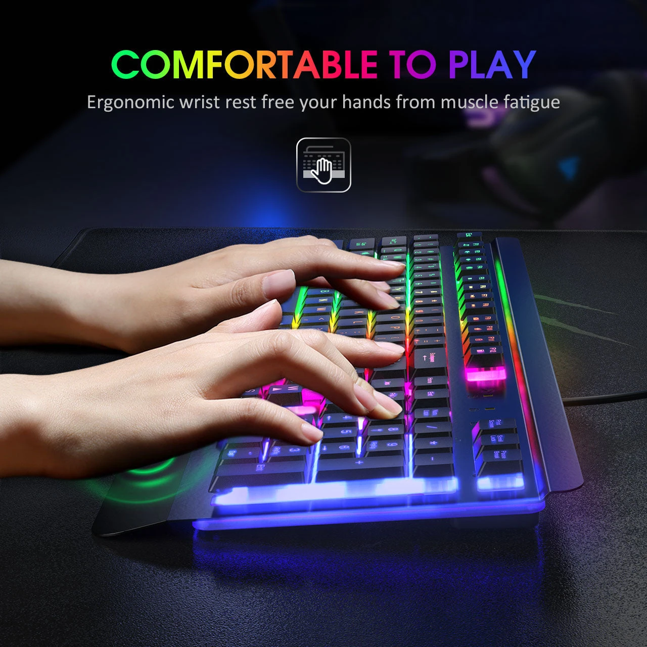 Gorgeous Backlights for Additional Game Atmosphere: Fantastic rainbow LED backlit gaming keyboard helps you better enter the game scene, the brightness and backlight speed are changeable, you can choose your own style. The backlight of the keyboard also can be turn off when you not need.