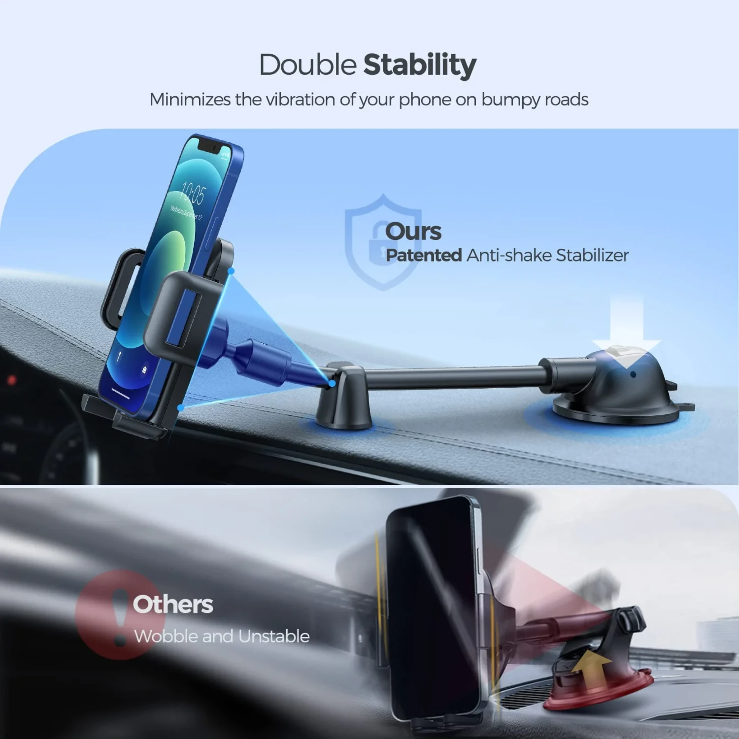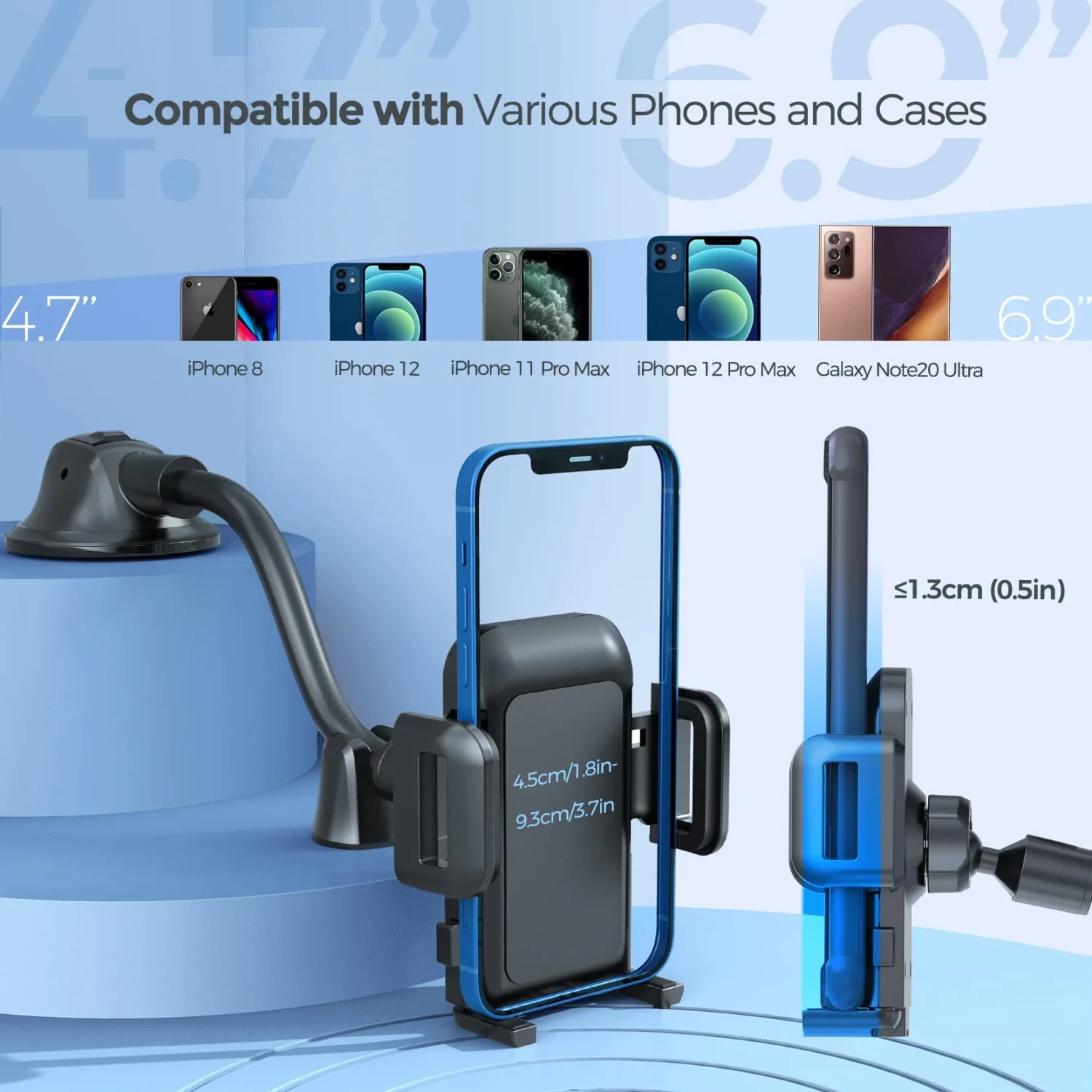 Car Phone Holder Mount, Long Arm Dashboard Windshield Phone Holder With Anti-Shake Device, Strong Suction Cup Car Mount Compatible With IPhone 14 13 12 11 Pro Max XS, Galaxy Note S22 S20 S10 And More