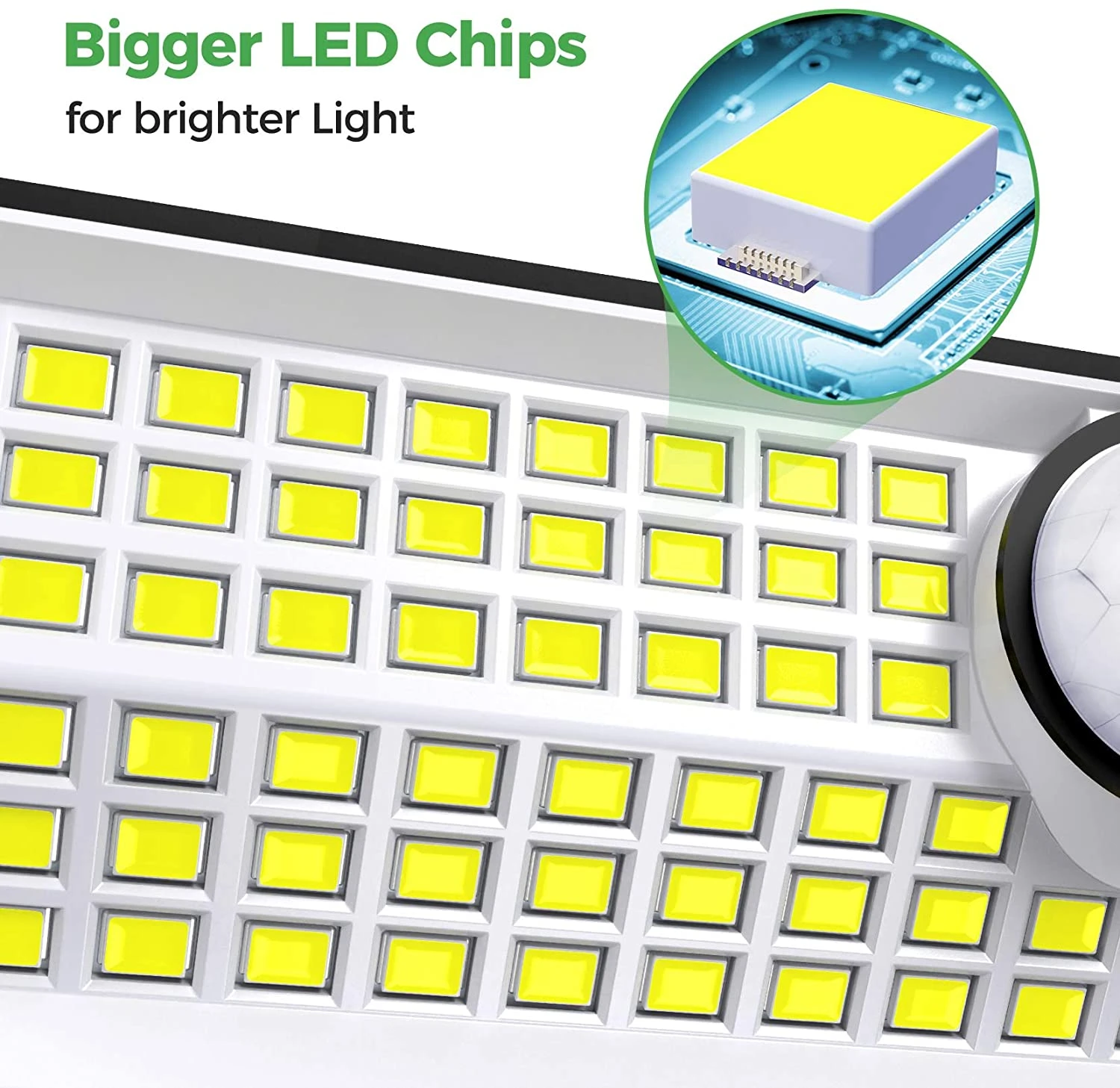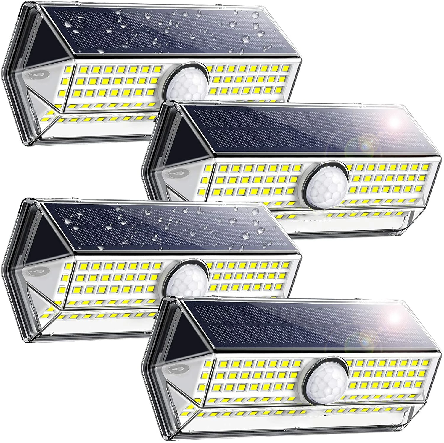 【Efficient Solar Charging & All Weather Resistance】Designed with monocrystalline solar panels, the solar conversion rate has been improved from common 16.5% to 20.5%. Made of high-impact ABS material and waterproof design, solar motion sensor light outdoor reaches IP67 waterproof level. It is perfect for withstand extremely terrible weather. Whether it’s a rainy day, hot day, freezing day, no need to worry about your solar lights outdoor