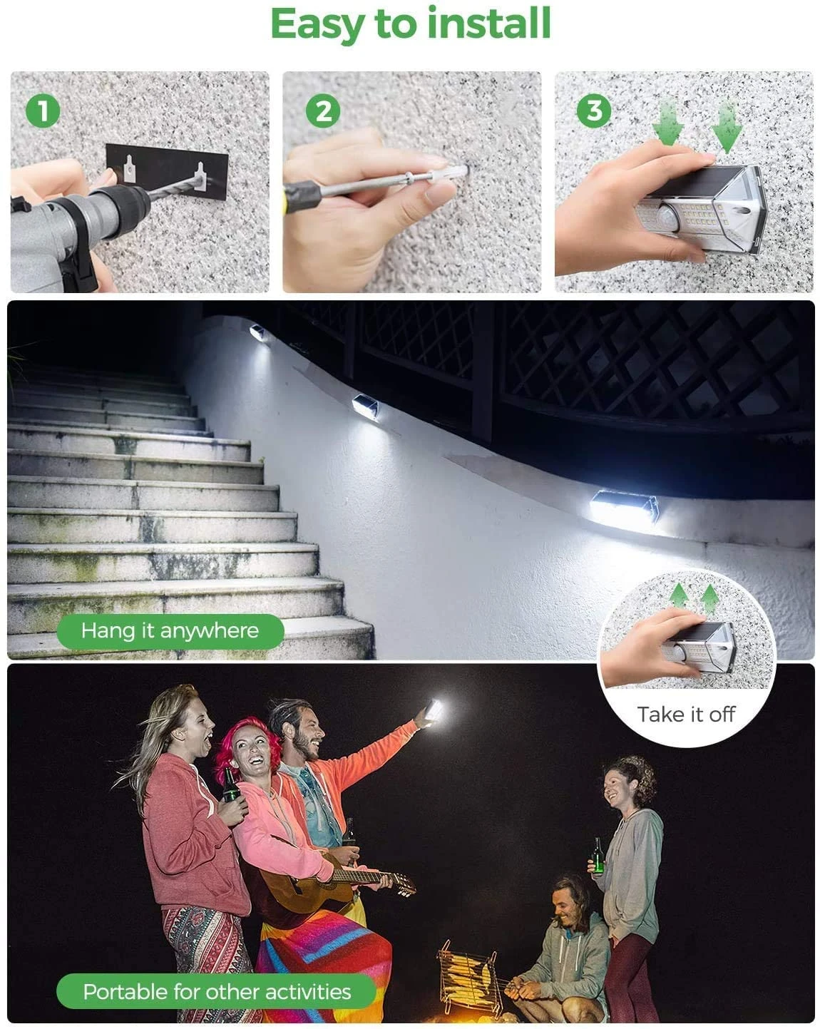 【Easy to Install & Portable】Easy to install with an included punch reference card. Unique mounting clip design, easy to hang up the solar flood light and take it off. This solar powered light is a perfect flashlight for outdoor activities and emergency lighting during a power outage. Best Christmas gift/ Xmas presents to your parents, old grandparents, and your friends during the dark winter evenings