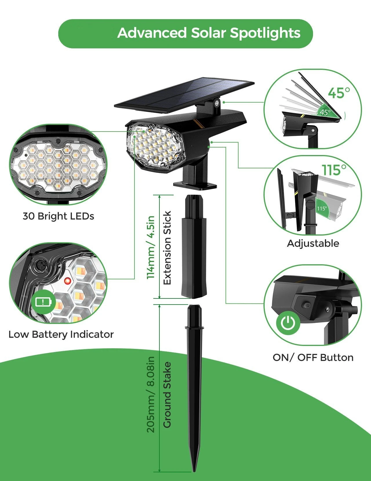 The waterproof grade that can withstand the real tests gives outdoor solar lights a longer service life. No matter it rains, snows, high frost, high heat or other extreme weather, you can use the solar spotlights at ease.