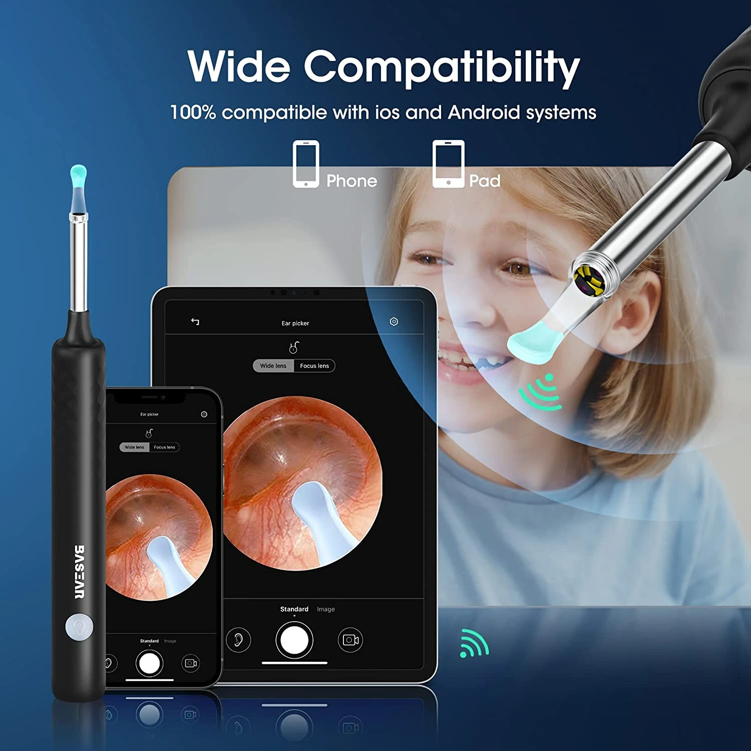 - 100% Compatible with ios & Android:The ear wax removal kit is fully compatible with compatible ios and Android, connect to the ear wax camera via WIFI and start using it. You can use this earscope to observe your ears on your smart devices like cell phones, tablets, PAD, etc. Warm tip: Bluetooth connection is not supported. The built-in WIFI does not have Internet capabilities and will not access your data. Please feel free to use it.