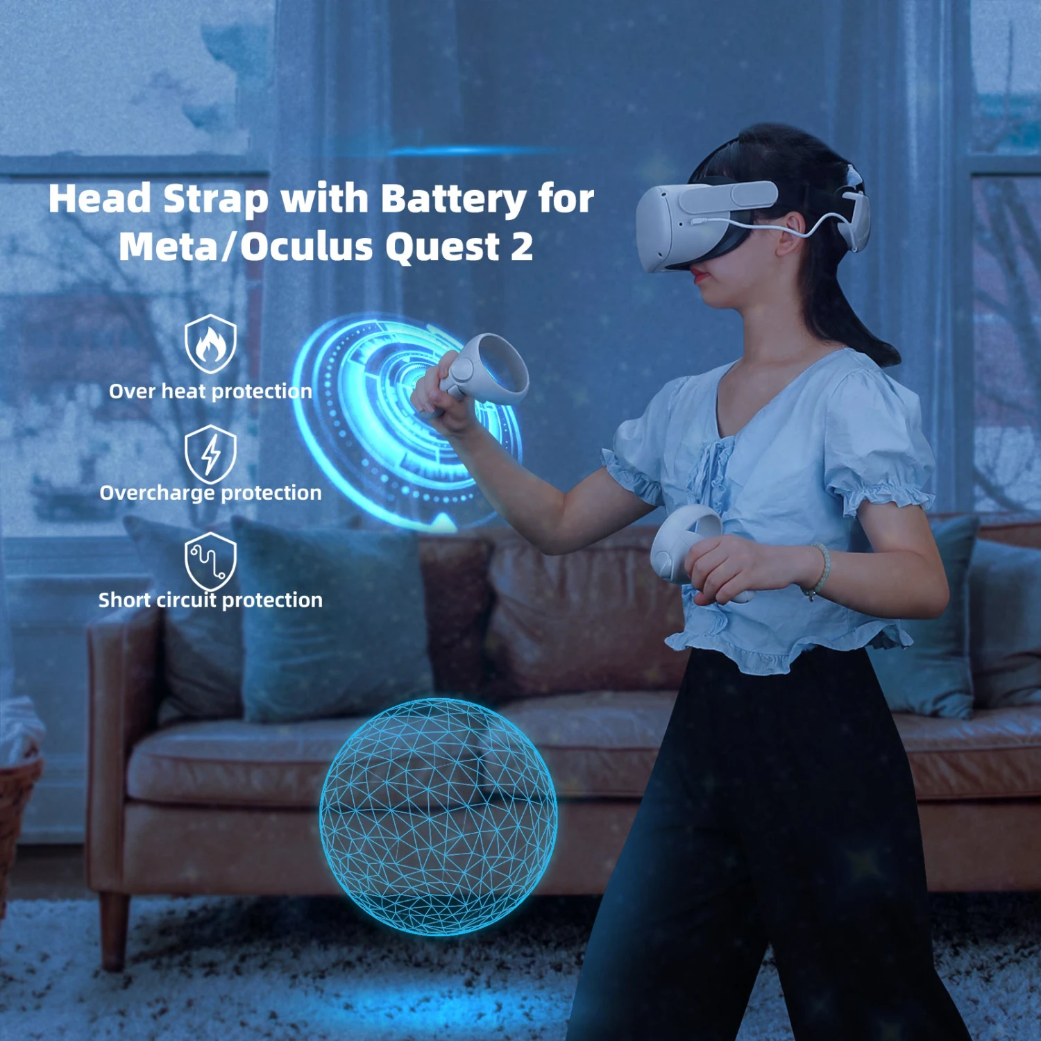 - 【5000mAH Battery Pack for Quest 2】This Quest 2 head strap is professionally developed for game lovers. It has a built-in 5000mAh rechargeable power bank, which can extend the usage time of the Headset by 3 hours, so that you will no longer worry about running out of power and be more immersed in the VR world