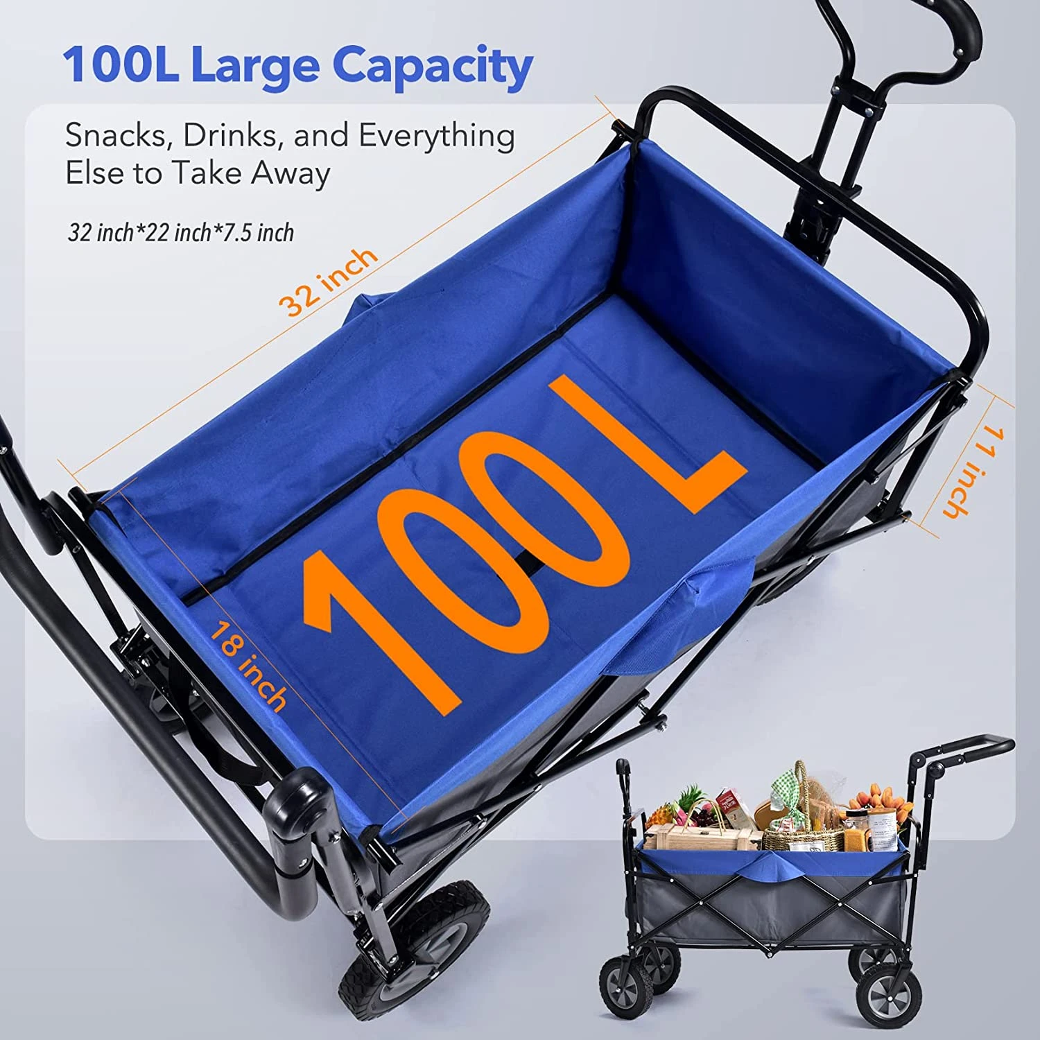 Heavy Duty Foldable Wagon Cart: Portable Utility Collapsible Wagon, All Terrain Wheels, 100L, 220 lbs Capacity, Push Pull Outdoor Garden Cart Foldable Wagon for Grocery, Camping, Shopping, Sports