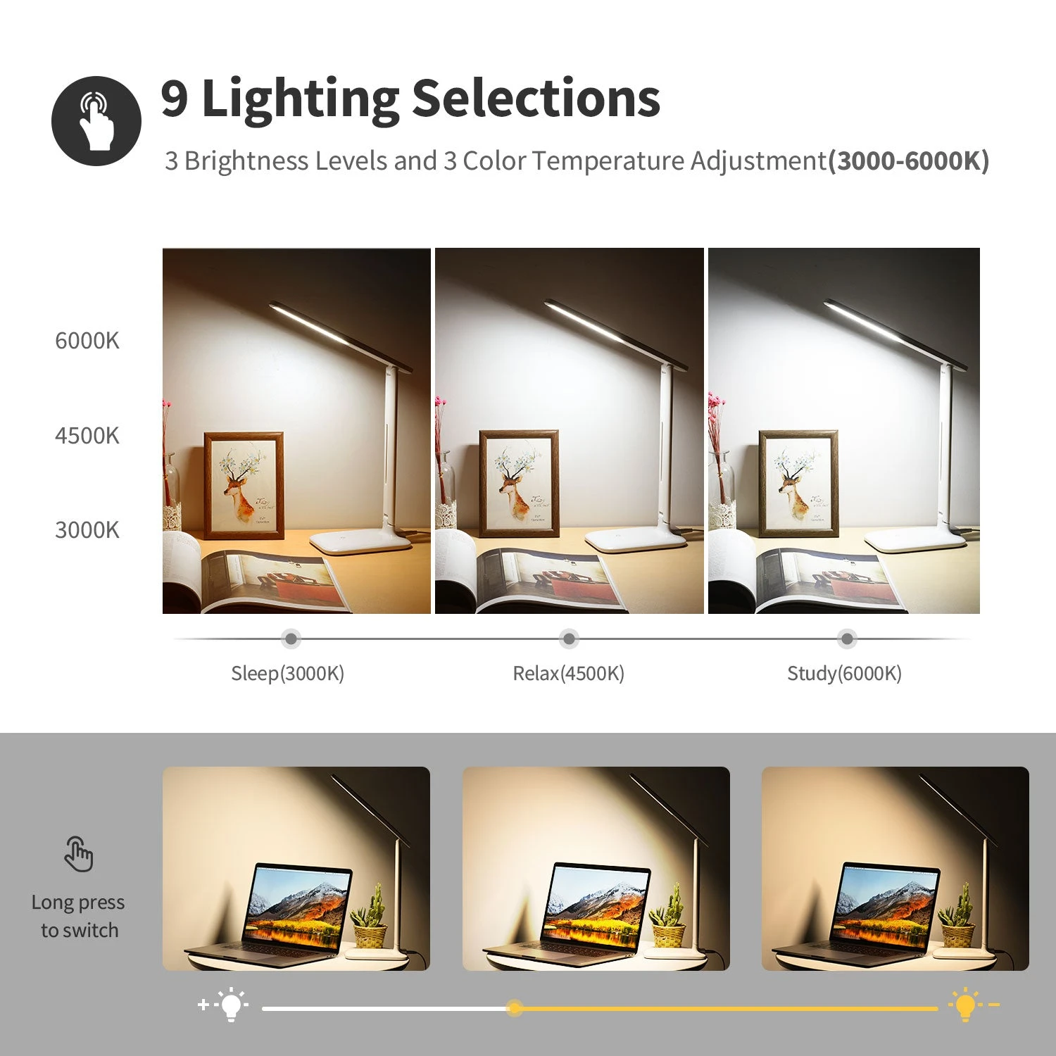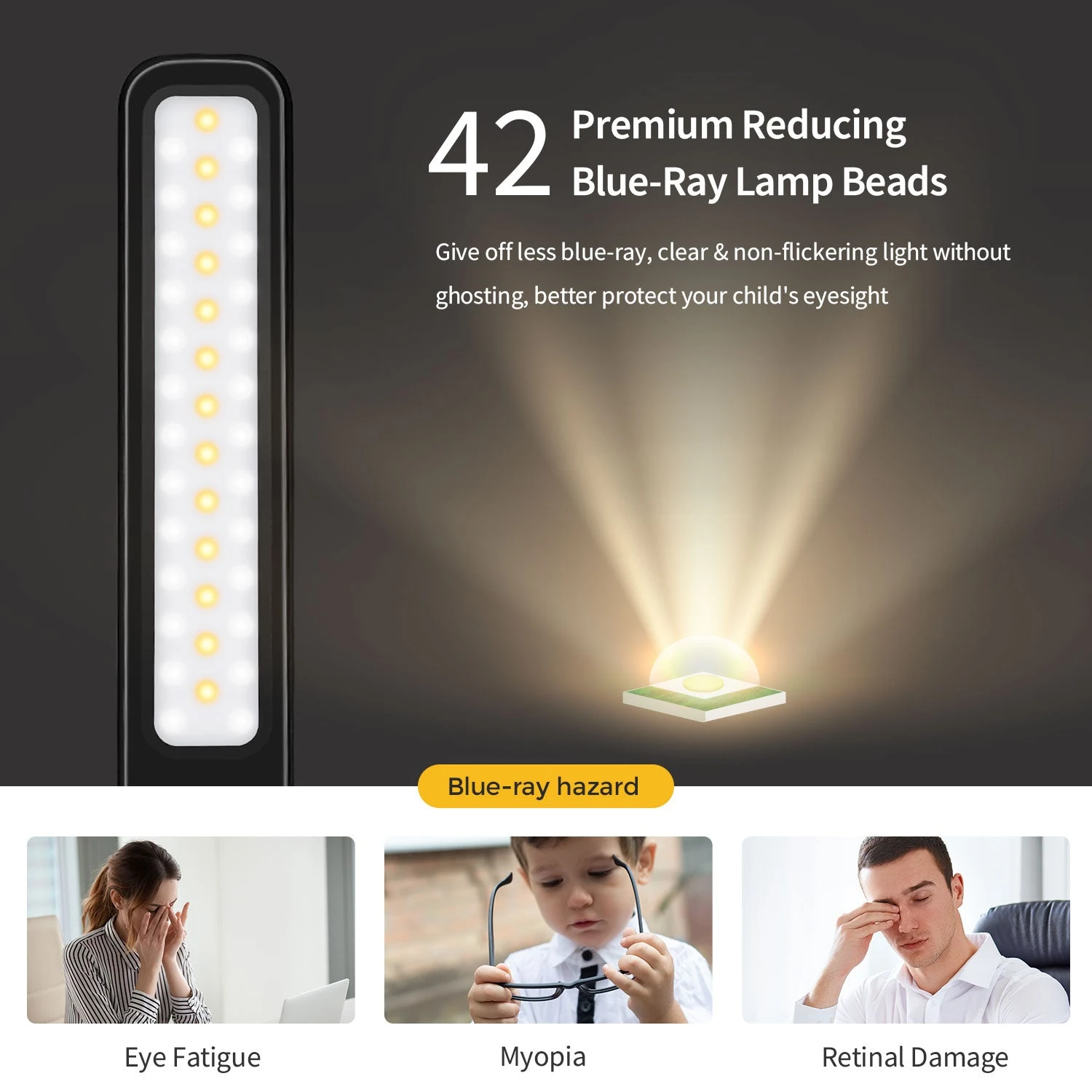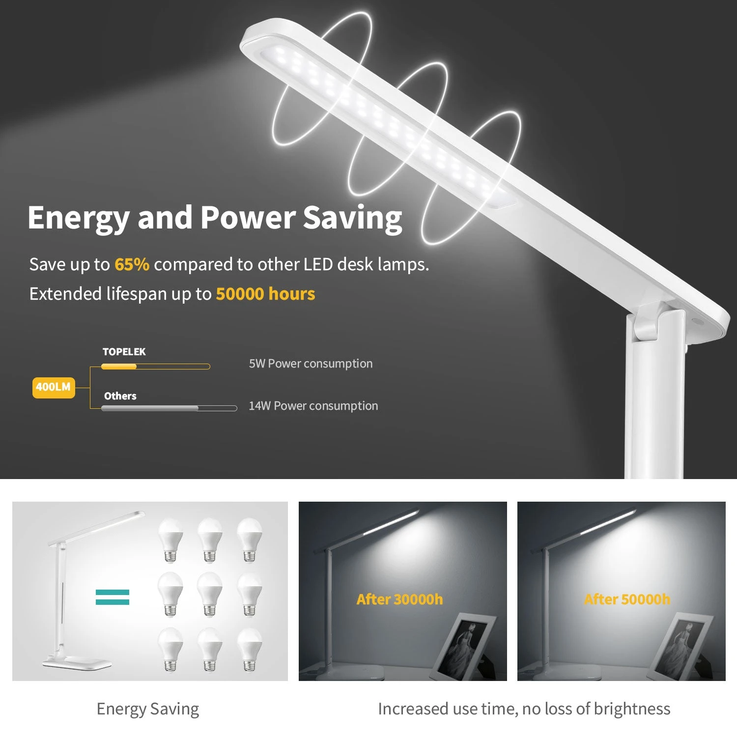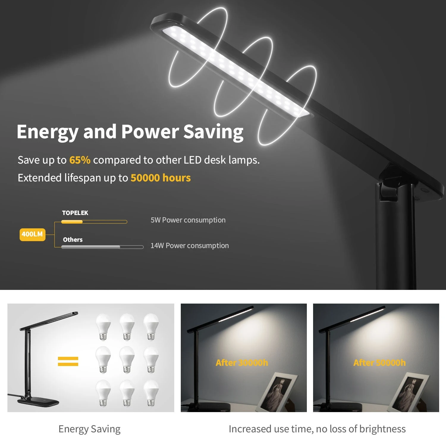 Professional Quality – This eye-caring LED desk lamp is of excellent workmanship and premium quality. No Lead or Mercury. No UV or IR Radiation. Up to 40000-hour Lifespan is 40 times longer than a typical incandescent light. Note: Please use 5V/1A adapter / charging cable we provide to charge desk lamp.