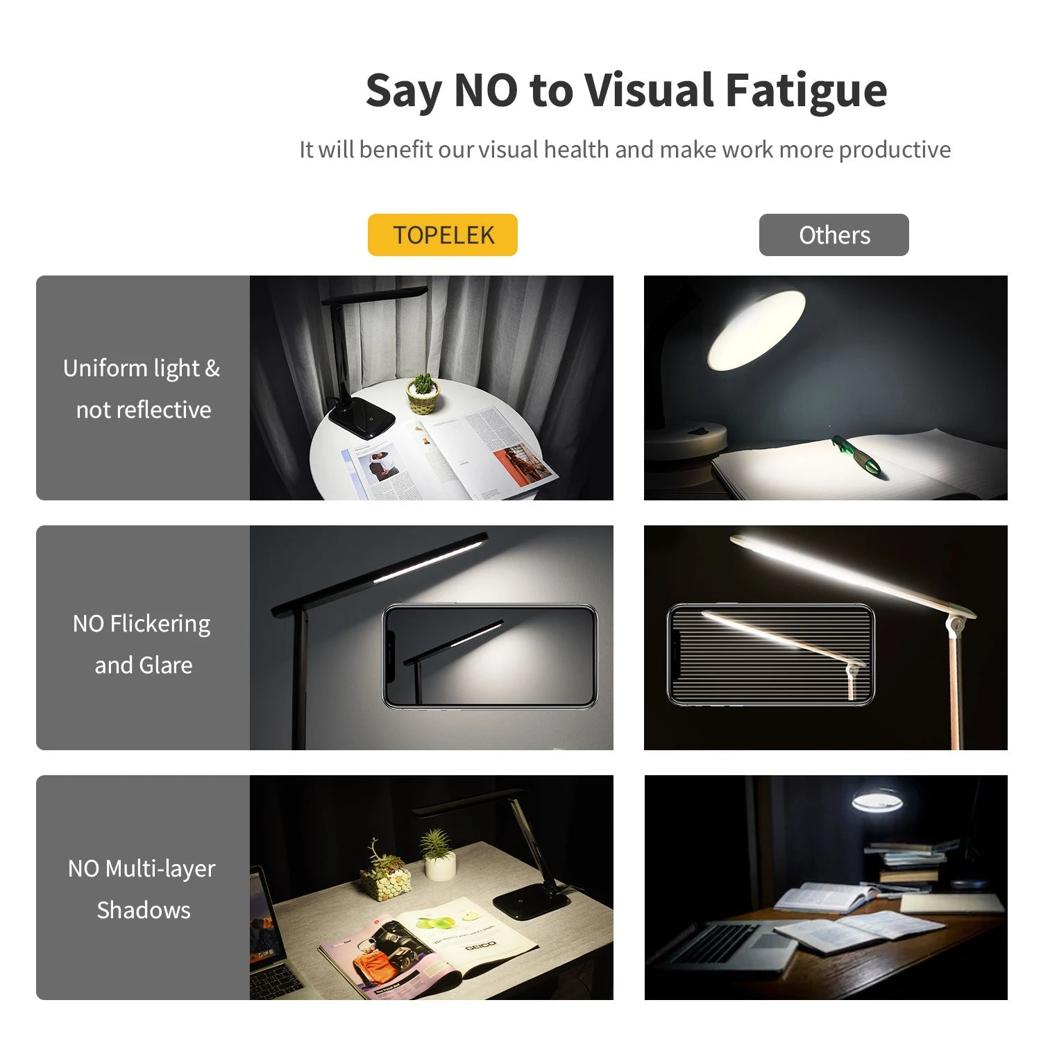 Eye-Friendly LED Source – LED table Lamp creates uniform comfortable and soft light. No flicker, no dizzy light, no shadow, which avoids eye strain caused by flickering light and harsh glare effectively. desk?lamp is ideal for reading, studying or working for a long time.