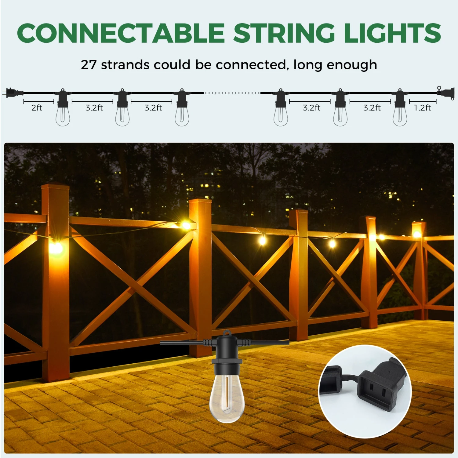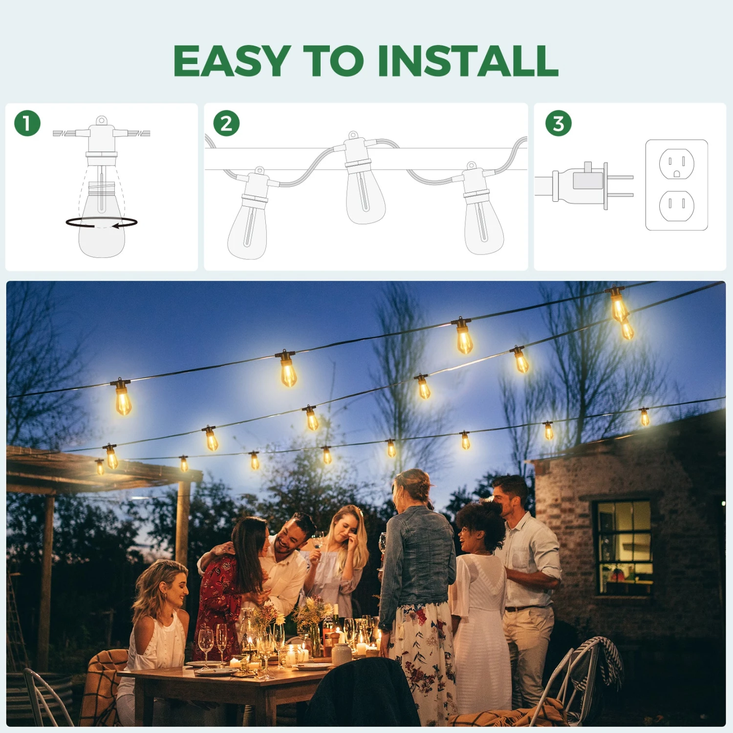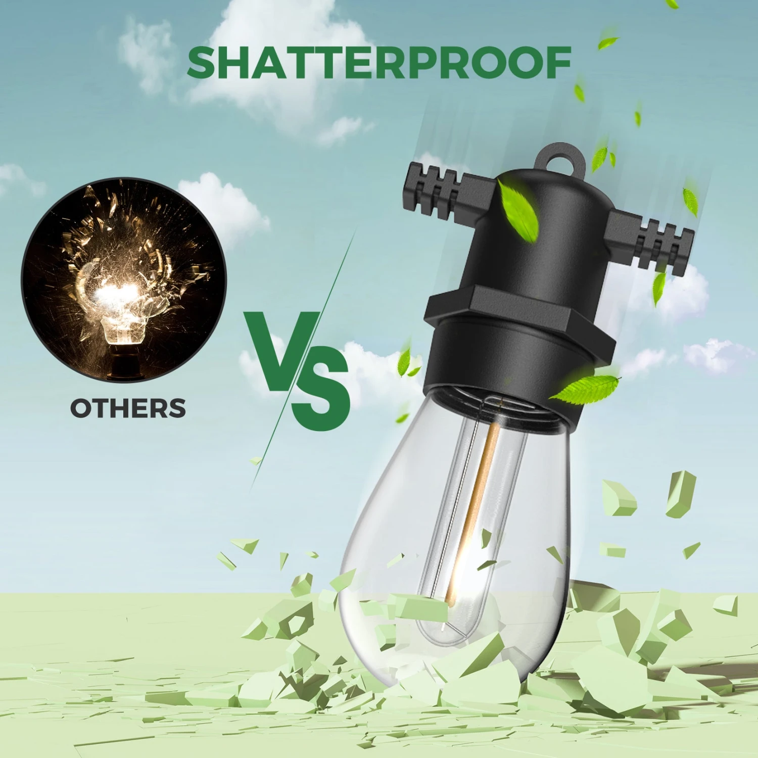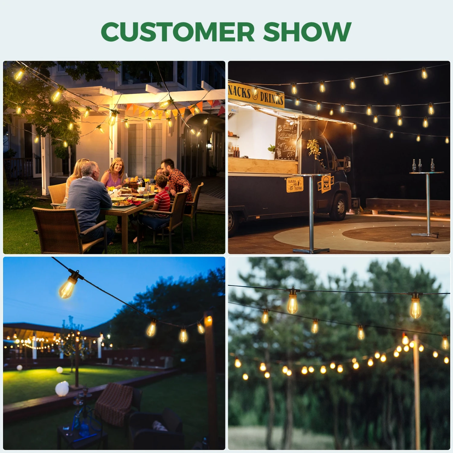 [Perfect for Outdoor Lighting] The 48ft flexible heavy-duty cord can withstand the wear of indoor or outdoor use. The IP65 waterproof bulbs can withstand all kinds of extreme weather, such as downpour, wind, and humid climate