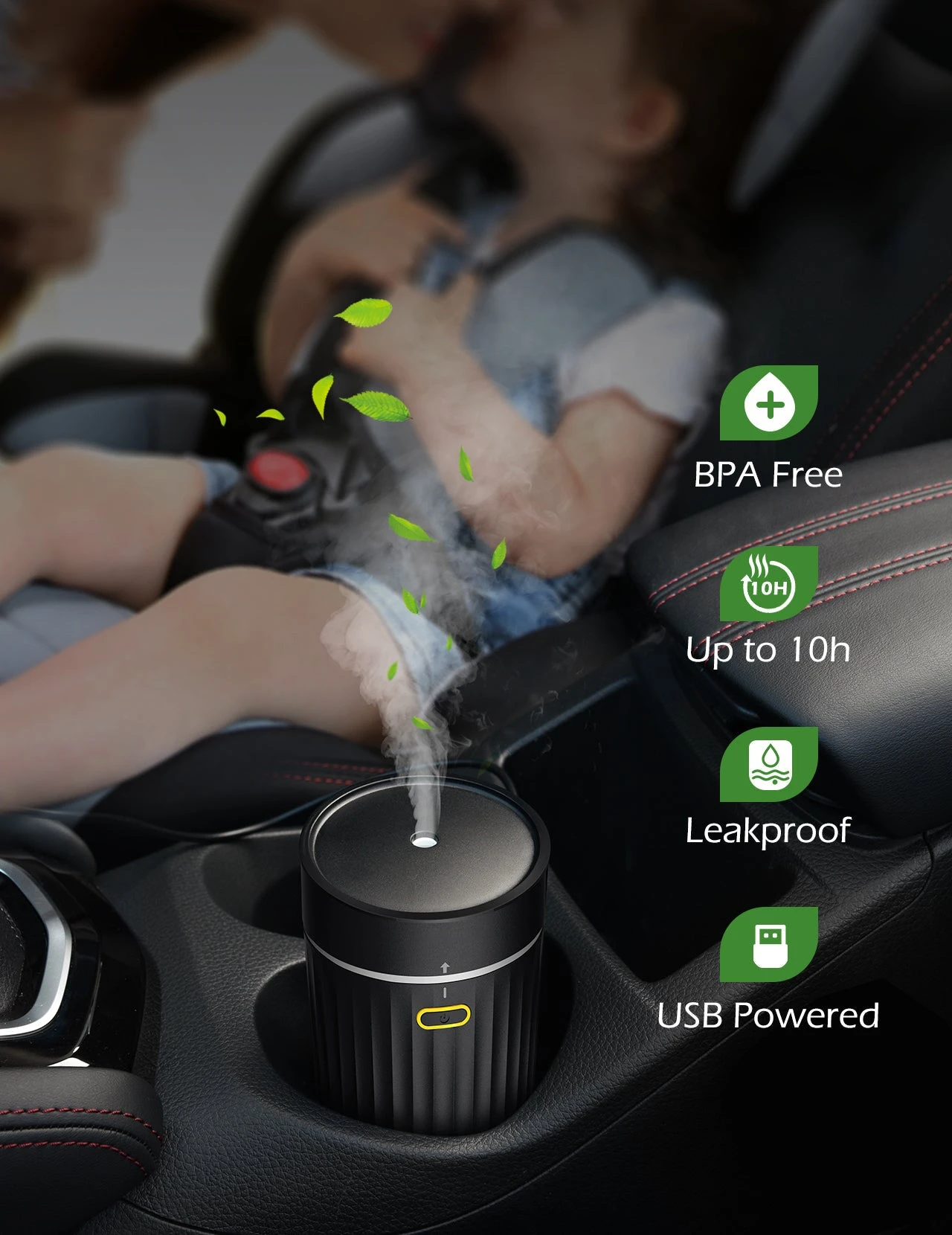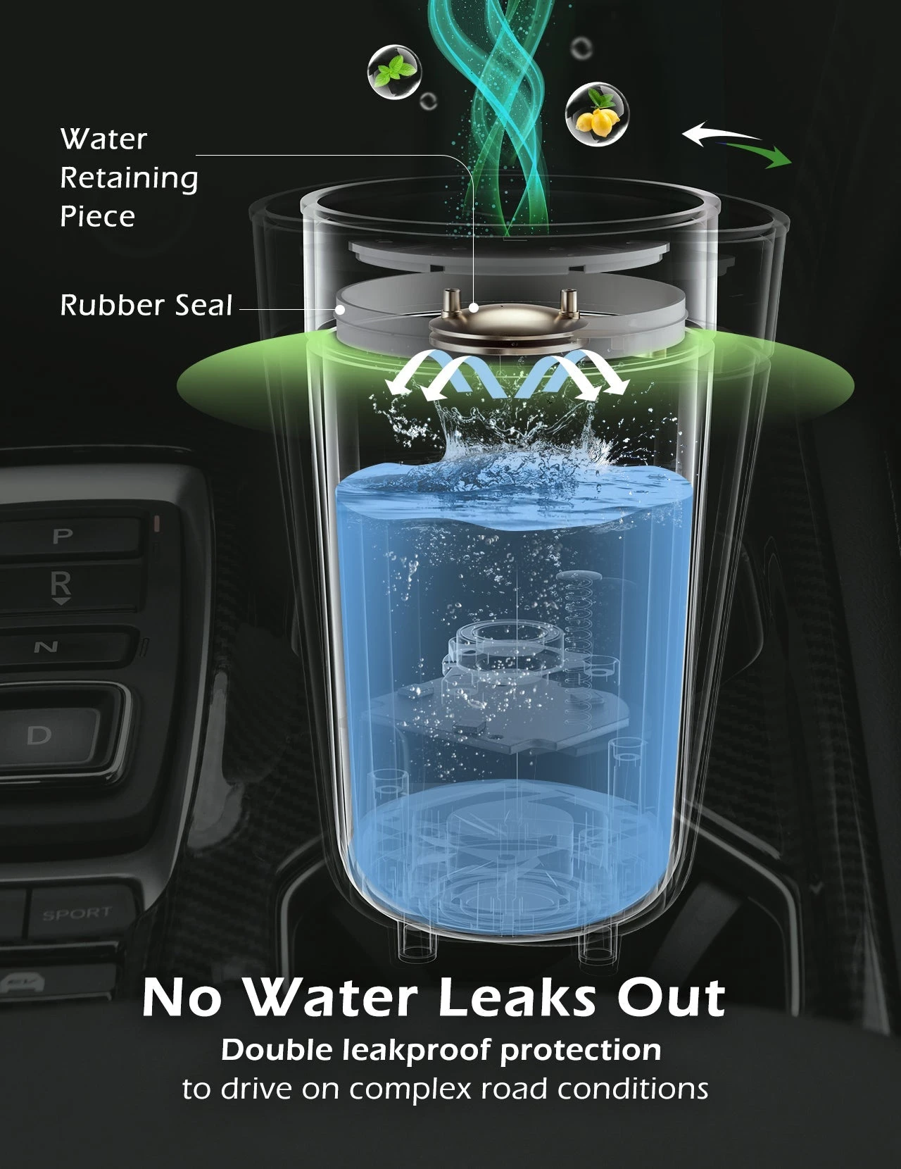 💙Worry-free Driving: The car diffuser is perfect to fit your car cup holder; Its built-in rubber seal in the cap and water retaining piece in the atomization port aim to prevent water leaking out or spilling out; You can feel free to drive on any complex road condition with a fine mist