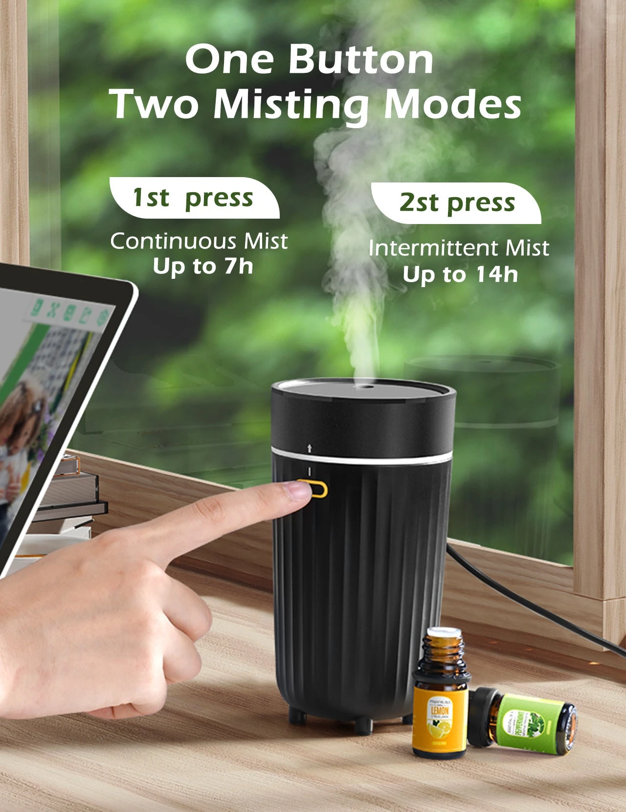 💙Long-lasting Fragrance: Operation time will be up to 7~14h when fills up with water; You can press the light summary to switch your wanted mode; The first press is continuous mist when you are eager to need the aroma cycling; The second press is an intermittent mist to make the fragrance last longer