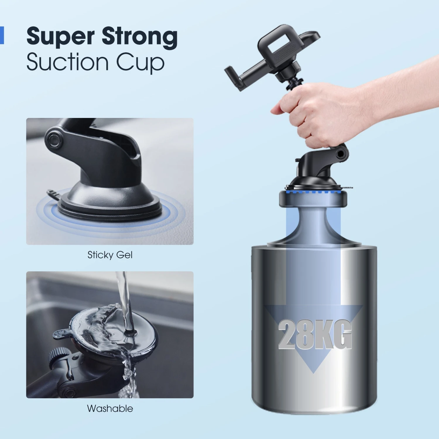 Super Strong TPU Suction Cup: The upgraded TPU suction cup with a layer of sticky gel allows greater heat resistance and securer hold. Comes with a dashboard pad, it secures the car mount to the curved or textured dashboard with its powerful 3M adhesive. The car phone holder features a “Quick Lock & Release Lever” for easy installation or transferring to another vehicle.