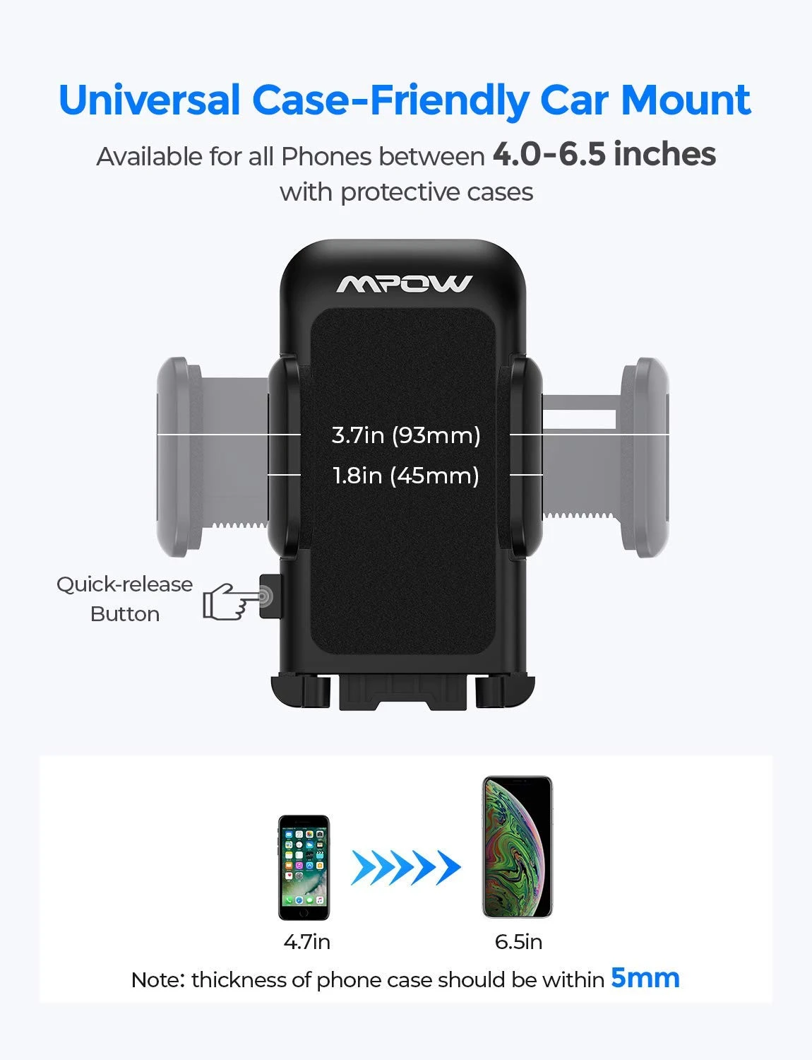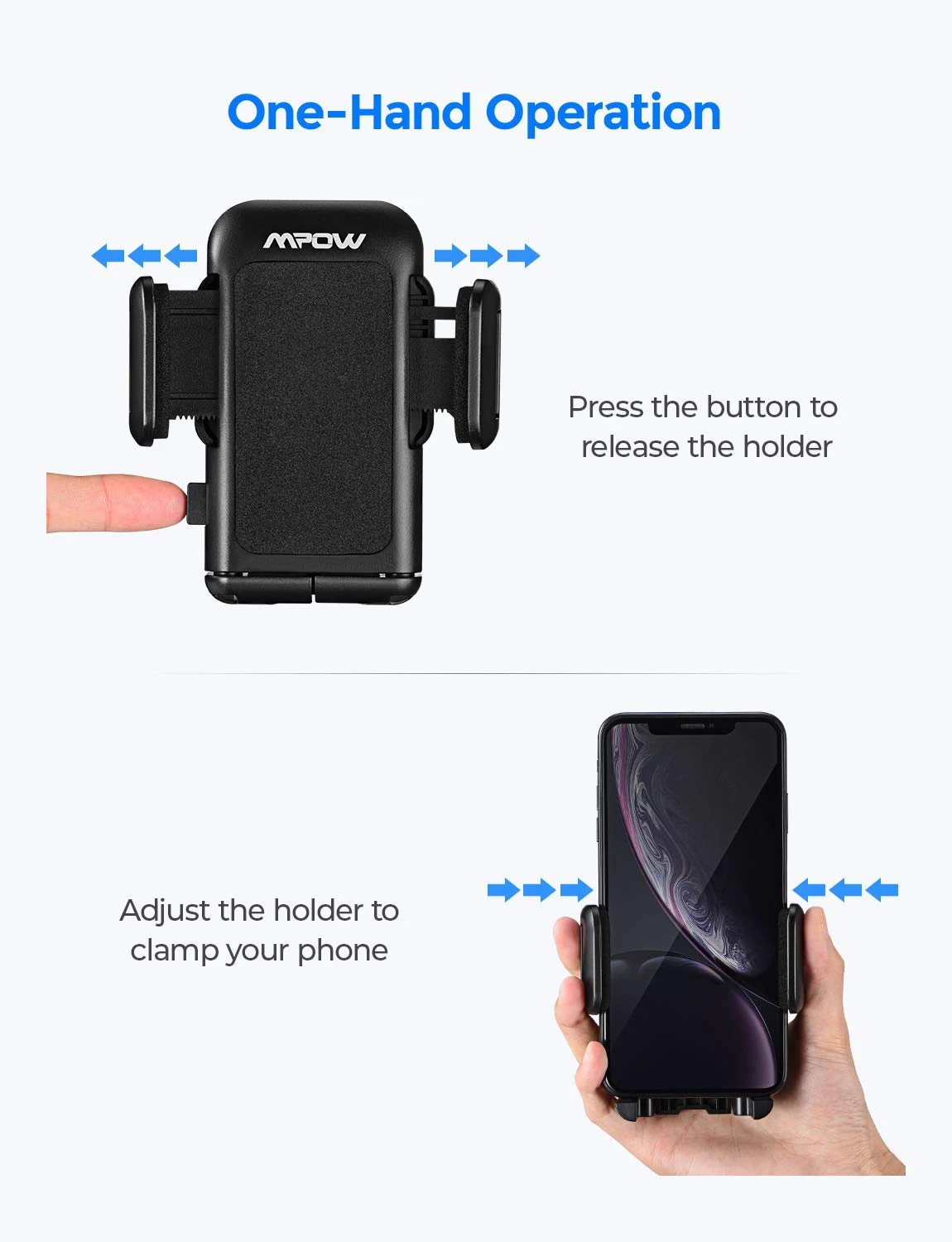 Mpow engineers designed the Mpow Grip 2 to offer firm, just place your device in the holder and push the two arms to lock it tight, or press the summary in the back to release it.