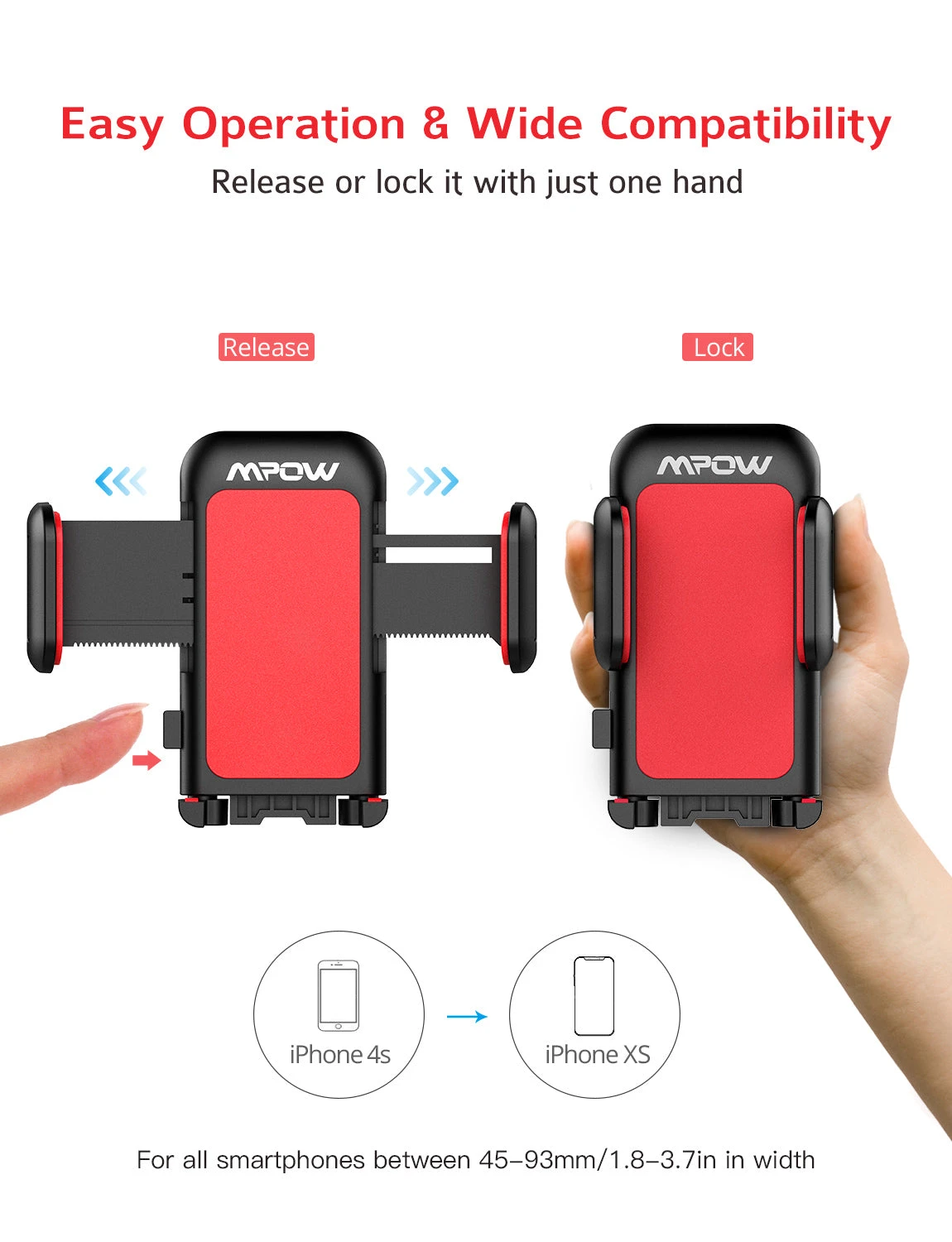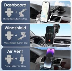 WIDE COMPATIBILITY: Owing to the adjustable construction, the car mount stretches from 1.6in (40mm) to 3.5in (88mm) to suit all smartphones between 1.58″ (4cm)-3.54″ (9cm) in width like iPhone4s and iPhone 7plus