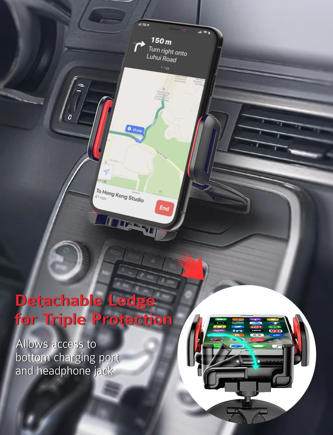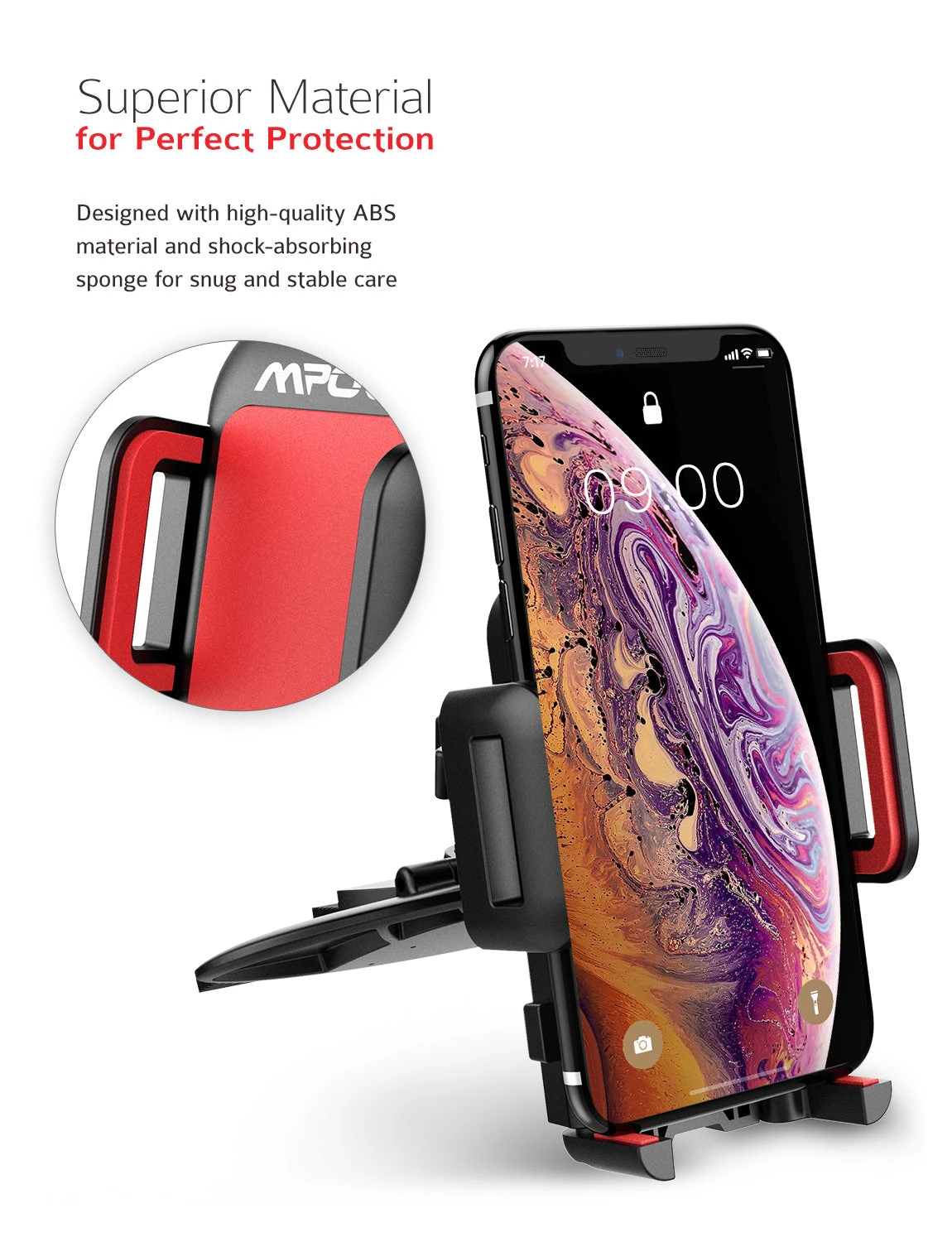 STURDY CD SLOT PHONE HOLDER: Thanks to the high quality ABS material, slip-resistant and shock dampening foam and the provided pads, the car mount holds the cell phone tightly while protecting your cellphone from scratching