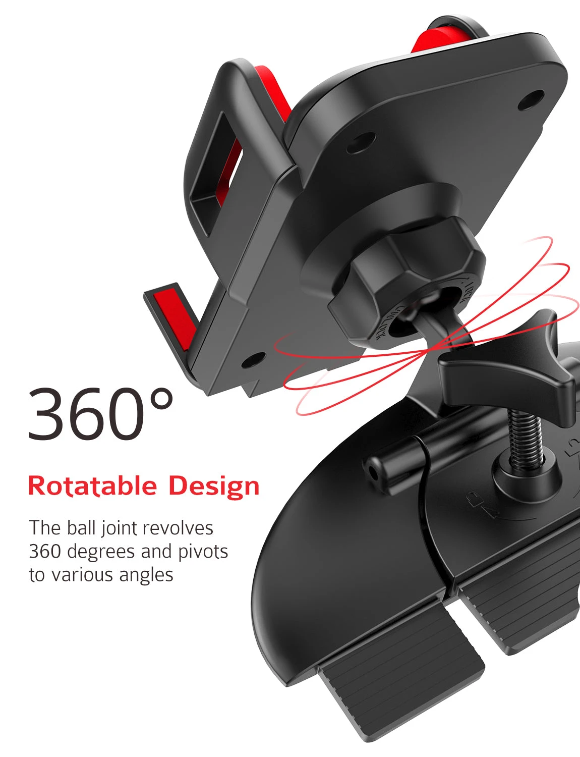 ADJUSTABLE VIEWING ANGLES: Rotate the ball joint up to 360¡ã for most suitable viewing angle to enjoy a more relaxed and safer drive while allowing CD player¡¯s accessibility