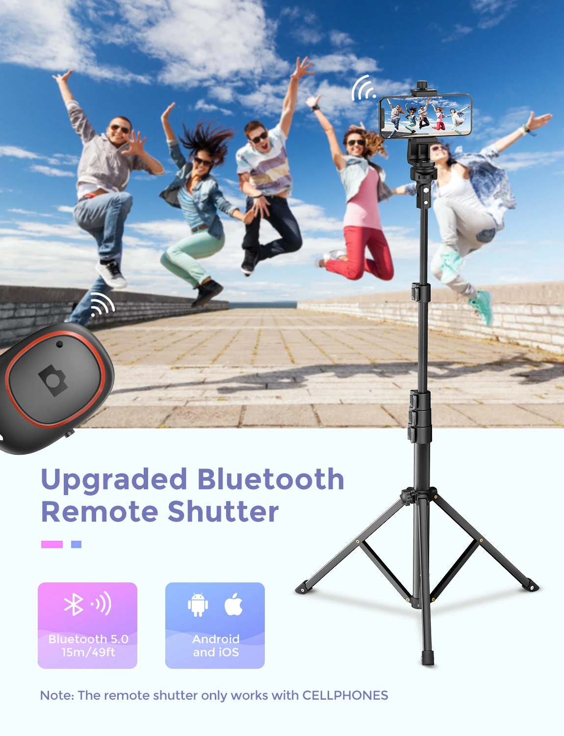 【BLUETOOTH REMOTE TO FREE YOUR HANDS】The tripod comes with a battery-powered remote control for hands-free shots no need additional app Pocket-sized especially fit for phone using ( Note Bluetooth remote NOT works with camera it only support phones ) It is very simple to connect to your phone via Bluetooth you will be able to record video or take photos remotely from up to 10m/33ft away (If connected but can’t take photos Pls set the Volume Button as the shutter on your phone first ).