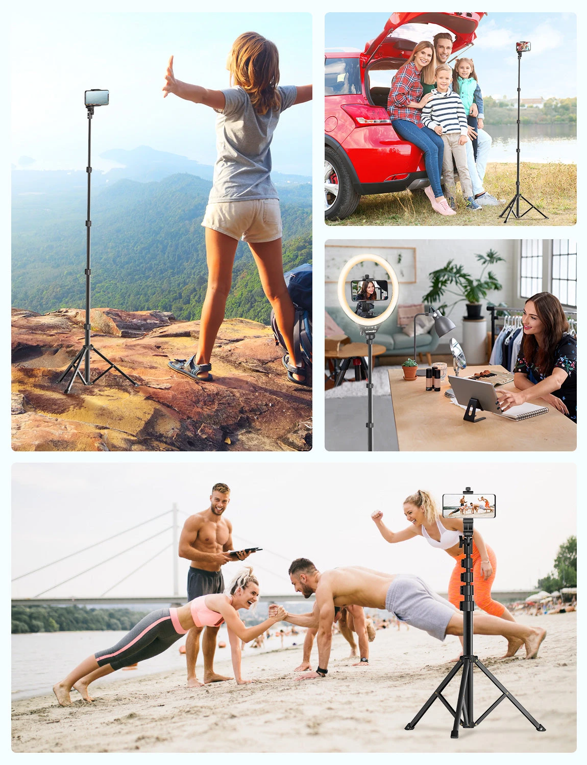【IDEAL LIVE STREAMING TRIPOD】 Mpow selfie stick tripod is a professional selfie stick as well as an ideal live streaming tripod, for office workers to make video calls, for teachers to shoot online lecture videos, and for those who like to watch TV on the sofa, perfect for bloggers to share tutorials on beauty, dressing, cooking, and fitness, for dancers to shoot teaching videos.