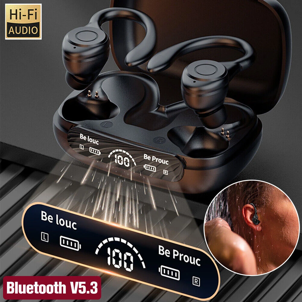 Wireless Earbuds Bluetooth 5.3 TWS Headphones 160Hrs Playtime with Charging Case LED Diaplay Hi-Fi Sweatproof Noise Canceling Over Ear Earhooks Earphone