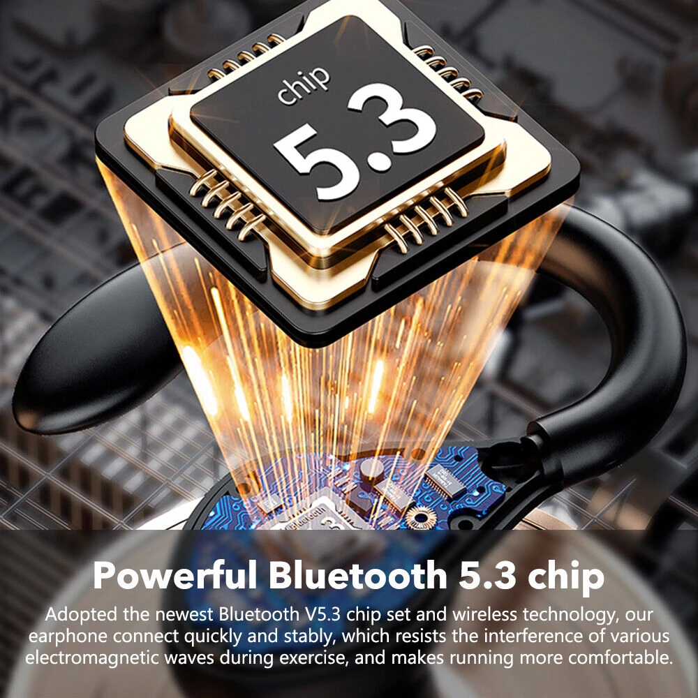 1.Powerful Bluetooth 5.3 chip: Adopted the newest Bluetooth V5.3 chip set and wireless technology, our earphone connect quickly and stably, which resists the interference of various electromagnetic waves during exercise, and makes running more comfortable.