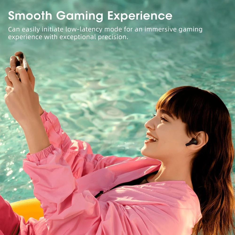 - Touch function: Answer incoming calls, play music and other daily operations can be done with a single touch of finger on the back of the headset, long press with two fingers on the headset can start playing mode and turn on and off the low latency function