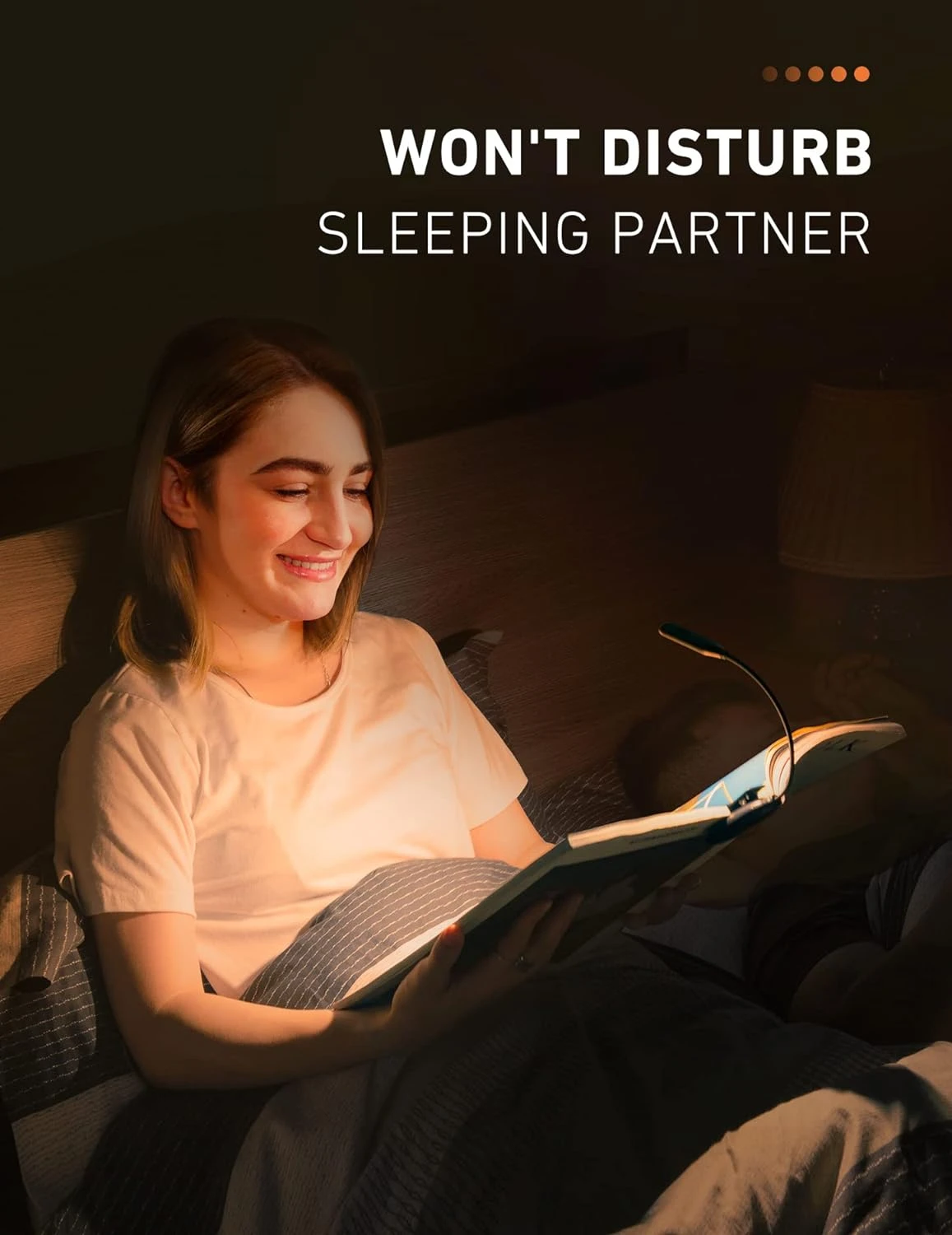 - 【CUSTOMIZE YOUR ILLUMINATION】 The book light for reading in bed has 3 color temperatures and 3 brightness settings. The brightest setting easily lights up 2 full pages of any size book, and the lowest one creates a private reading space for you when your partner is sleeping next to you