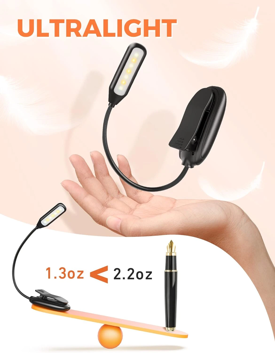 - 【AMAZINGLY LIGHTWEIGHT】 The mini reading light is so lightweight (only 1.3 oz) that you will hardly feel the added weight when you clamp it on the book. The foldable design makes it take up very little space, just like a mouse, easy to pack for traveling