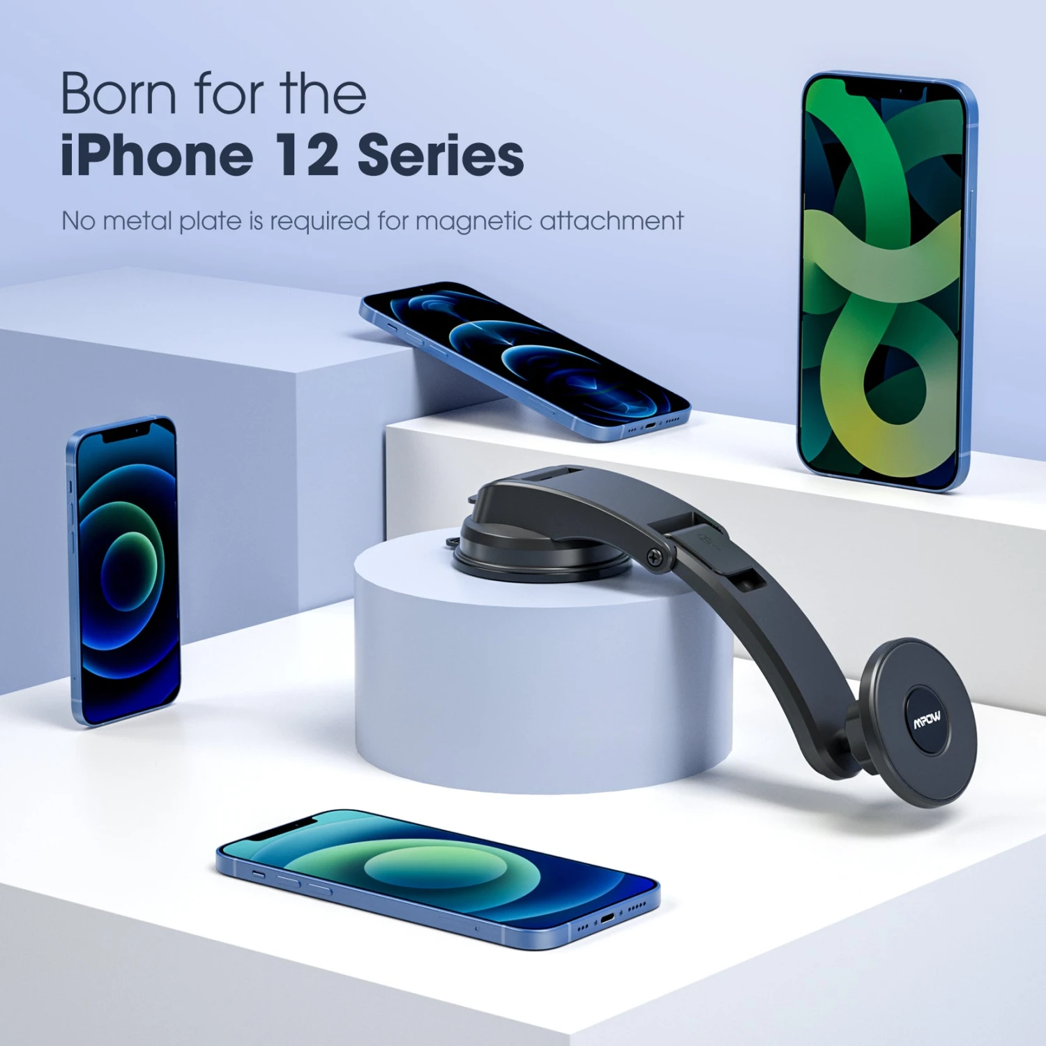 Compatible with the iPhone 12 Series: The Mpow magnetic car mount has built-in magnets, which can automatically click with the iPhone 12/12 mini/12 Pro/12 Pro Max, and is also compatible with the Mag-Safe cases (no additional metal plate required for iPhone 12 series and magnetic case).