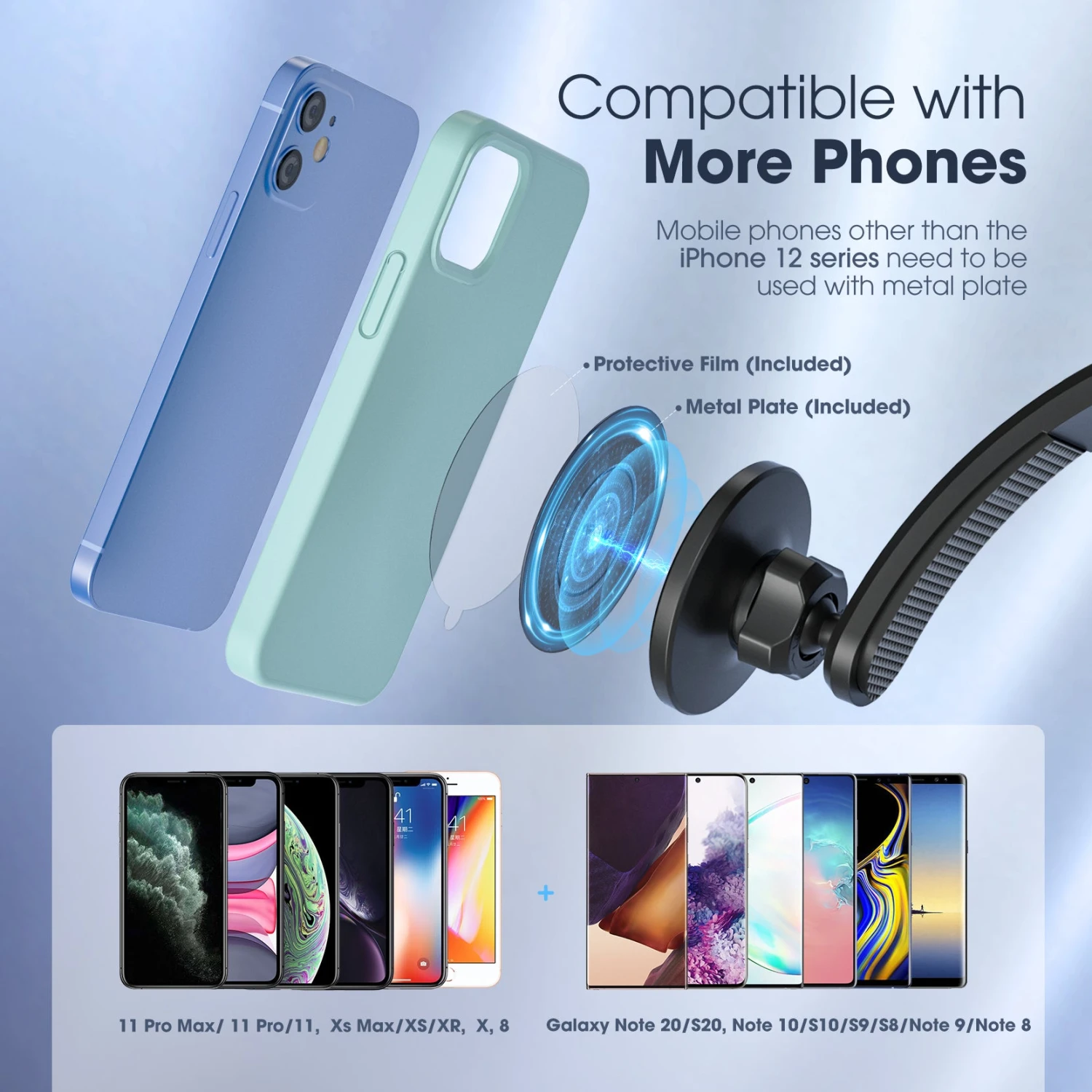 Compatible with Non-magnetic Phones: Apart from being compatible with the iPhone 12 series, it is also compatible with other non-magnetic phones and phone cases, however a metal plate (included in the package) is required to be attached to the phone or case.