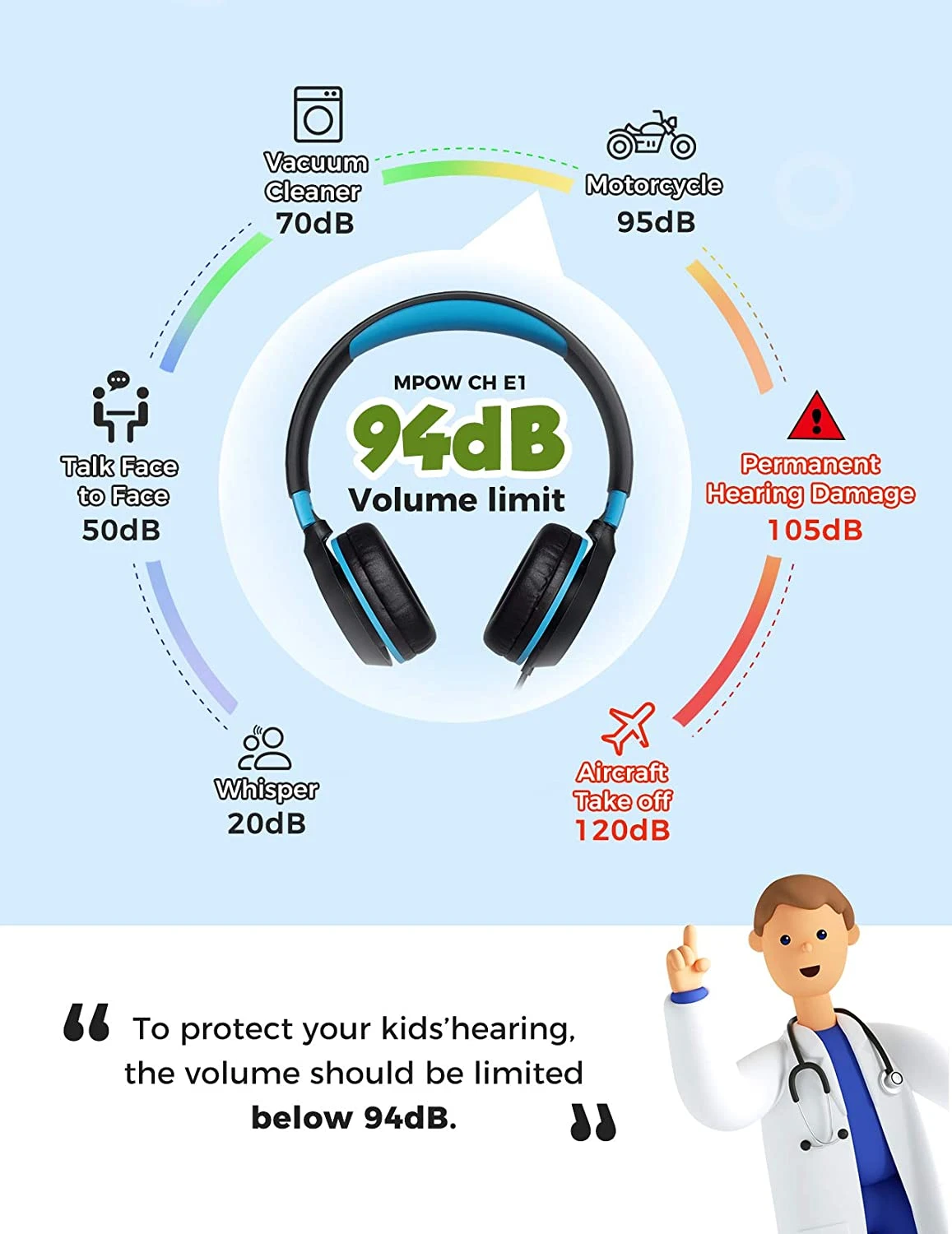 94dB Hearing Protection: Built-in volume limit at 94dB protects kids’ hearing from too loud noise; No need to always worry about hurting your babies’ ears; Excellent sound at an appropriate volume inspires your kids’ interests in study and music (Note: Mpow CHE1 doesn’t have a microphone).