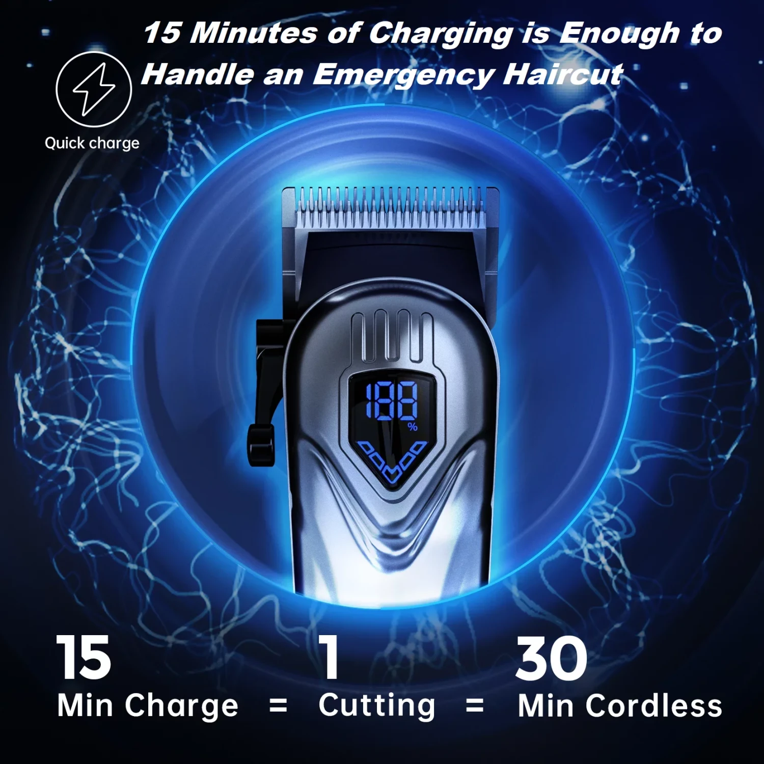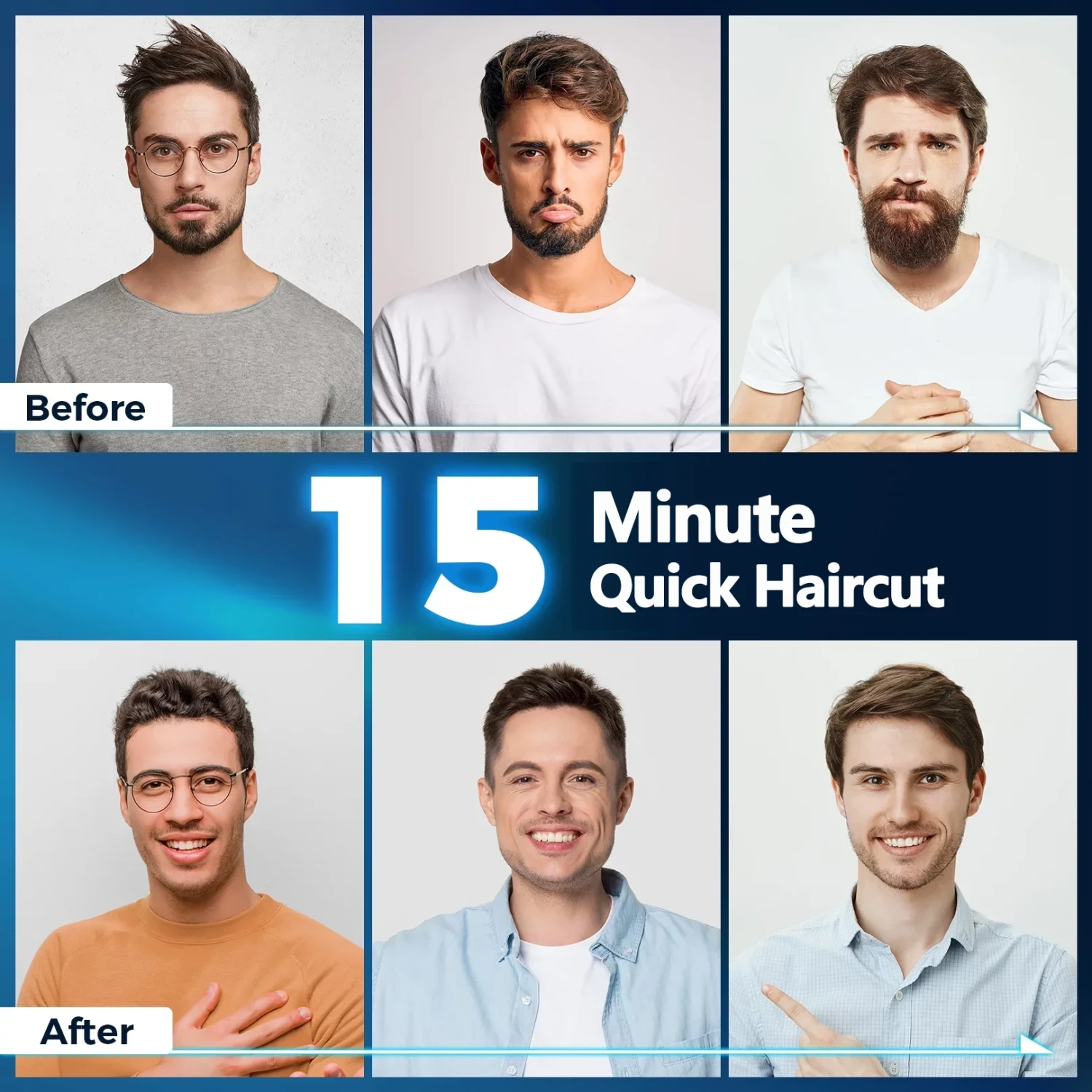 - 15min Quick Charge=1 Cordless Cutting, Respond to Emergencies – With only 15min charge, you can get a full cordless cutting. Quick charge of this electric mens hair clippers leaves you plenty of time to clean yourself up before your urgent big Zoom meeting.