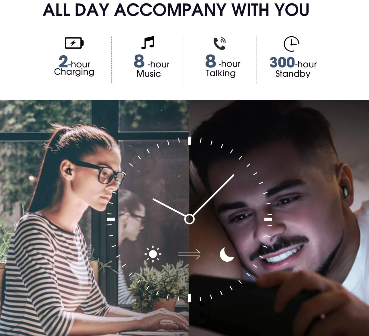 - 8HRS CONTINUOUS PLAYBACK: Mpow mini Bluetooth earbud supports 8 hours playtime and 300 hours standby time with only just 2 hours charging time. It also comes with a magnetic inductive charger, quickly charging anytime.