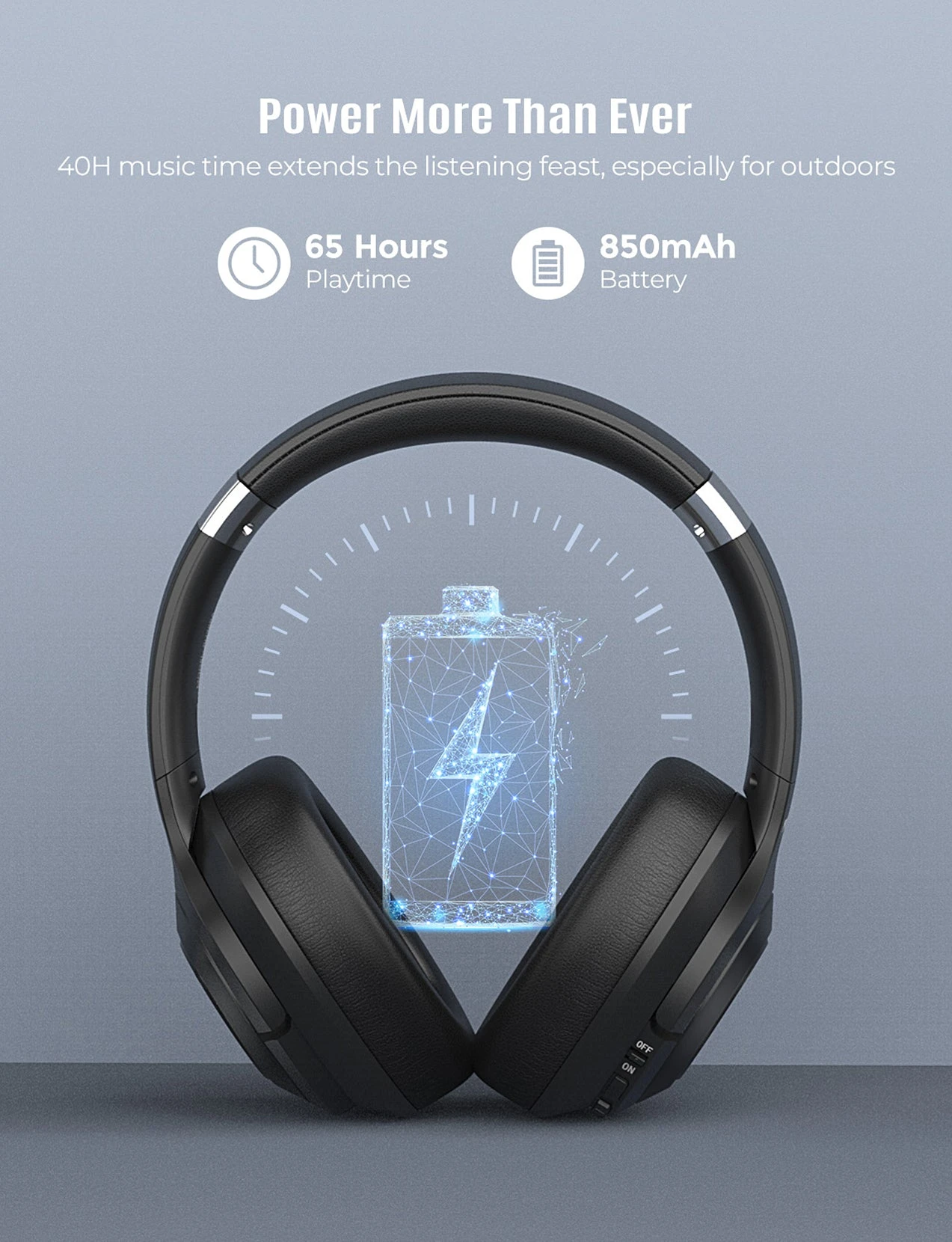 65H Prolonged Music Time: Free to enjoy enticing music with the longest playtime ever 65H music provided by 850mAh large-capacity battery extends your enjoyment time in a long stretch of vacations Or you can use the 3. 5mm audio cable included for an endless playtime in wired mode.