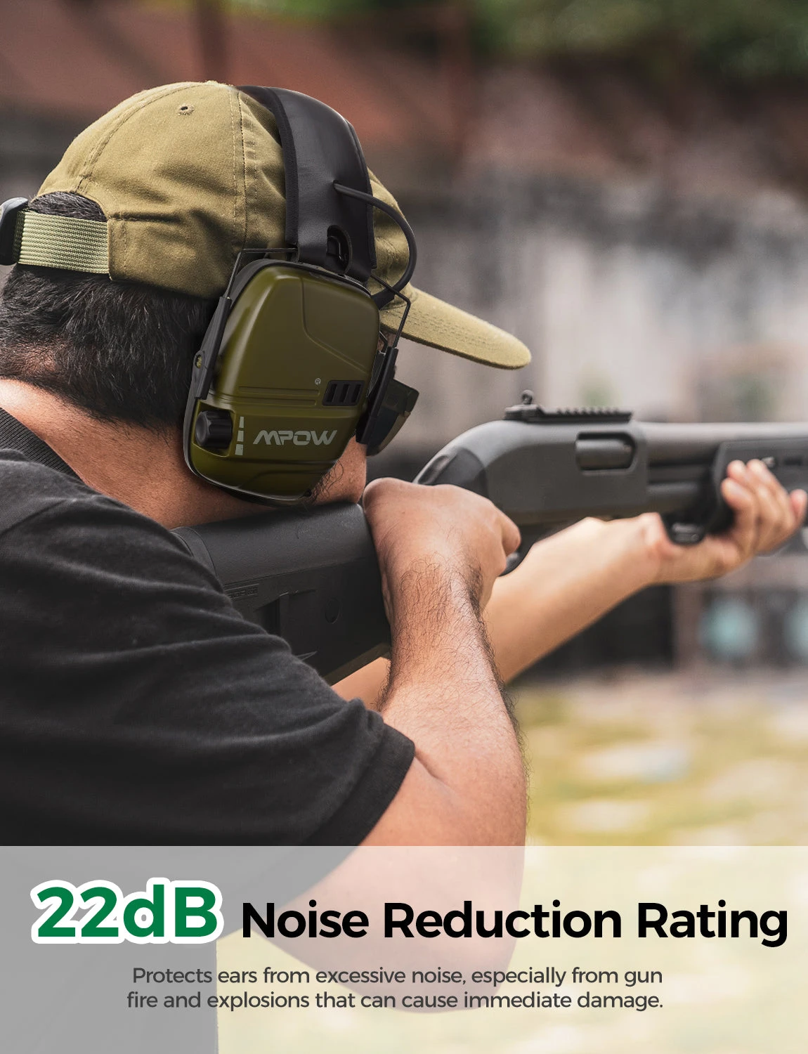 EFFICIENT SHOOTING-RANGE NOISE REDUCTION: Double-shell sealing technology and new thickened materials offer SNR 26dB noise reduction. MPOW professional noise reduction ear muff effectively filters low noise and increases the stereo effect. The noise over 82dB will be automatically reduced to protect your ear, providing optimal noise reduction across all frequencies on power-on mode.