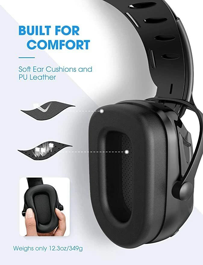 2. Made for lasting comfort: Mpow Noise Reduction ear muffs are extremely well constructed and reasonably comfortable. With soft foam ear pads and skin-friendly PU Leather, the ear cups fit snugly around your ears. The cups of these earmuffs are deep and have enough space inside the cups. Weighing only 12. 3 oz. /349 G, The earmuffs are surprisingly light and comfy to wear even during long sessions.