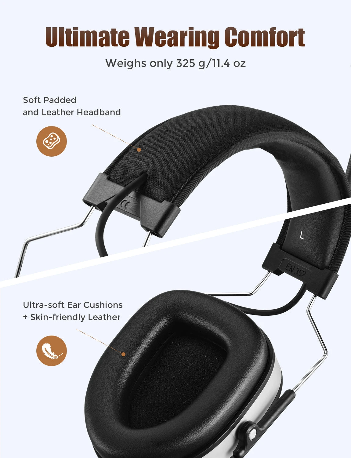 All-day Comfort: The AM/FM radio hearing protection are designed to be lightweight and provide ultimate comfort even during the long sessions. The soft cushioned ear pads and wide ear cups help them fit snugly around ears with no pressure.