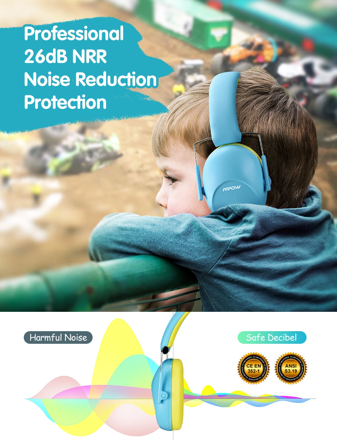 MPOW HP132A Kids Ear Protection Safety Ear Muffs, Adjustable, 26dB NRR