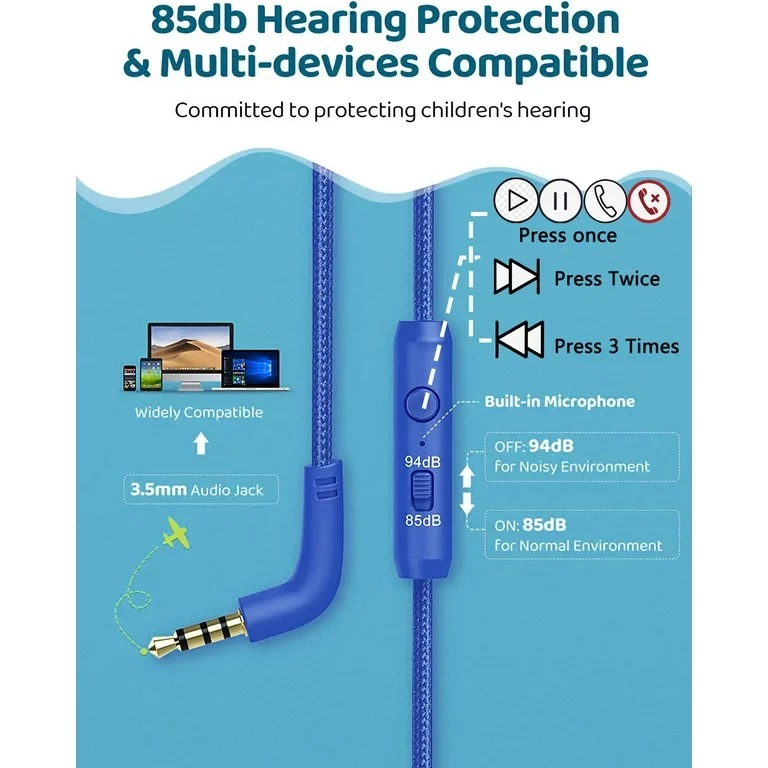 ✅85/94 dB Volume Limit Ensuring Hearing Safety & Simple in-line Controls for Little Ones to Learn and Use